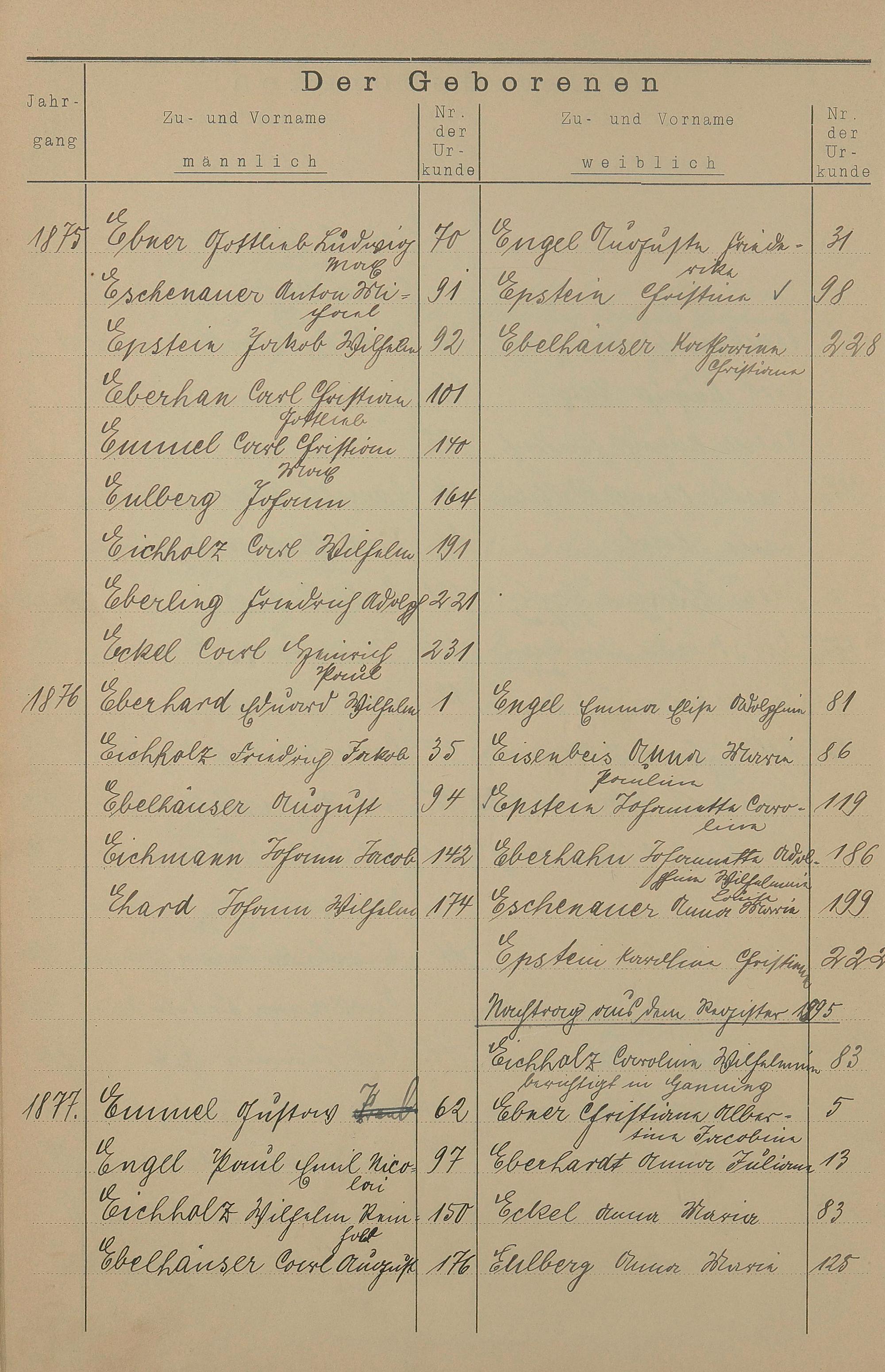 1554: Register A - Z zum Geburtsregister 1874-1900