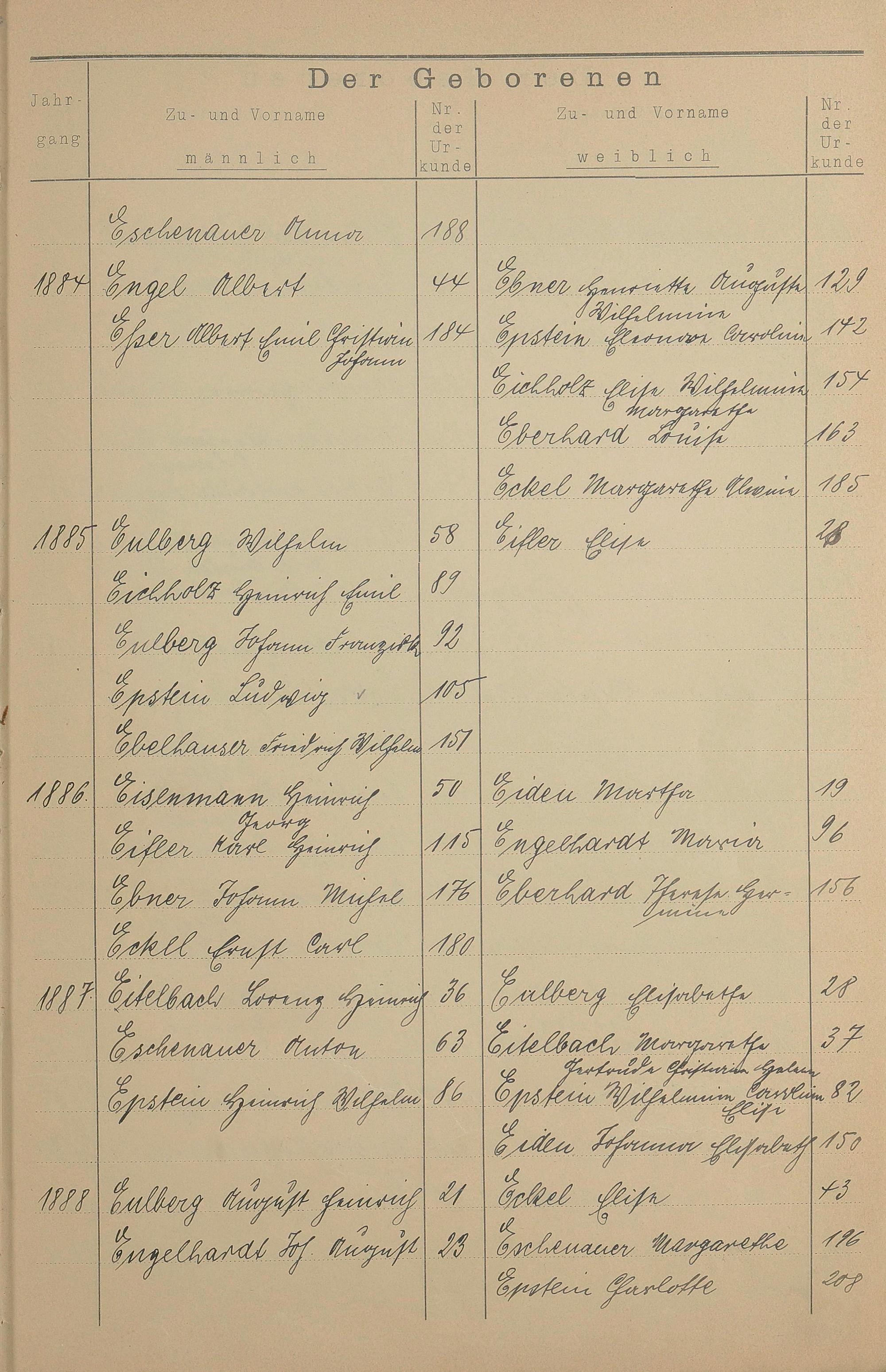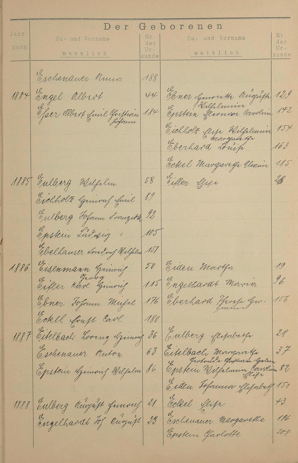 1554: Register A - Z zum Geburtsregister 1874-1900