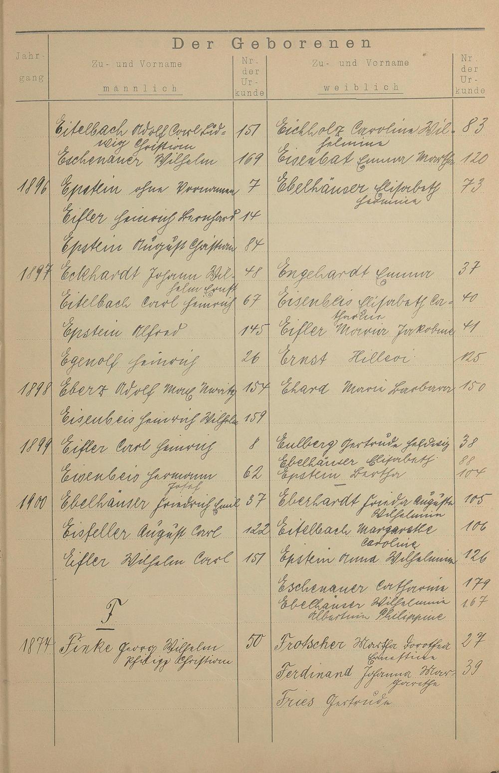 Register A - Z zum Geburtsregister 1874-1900