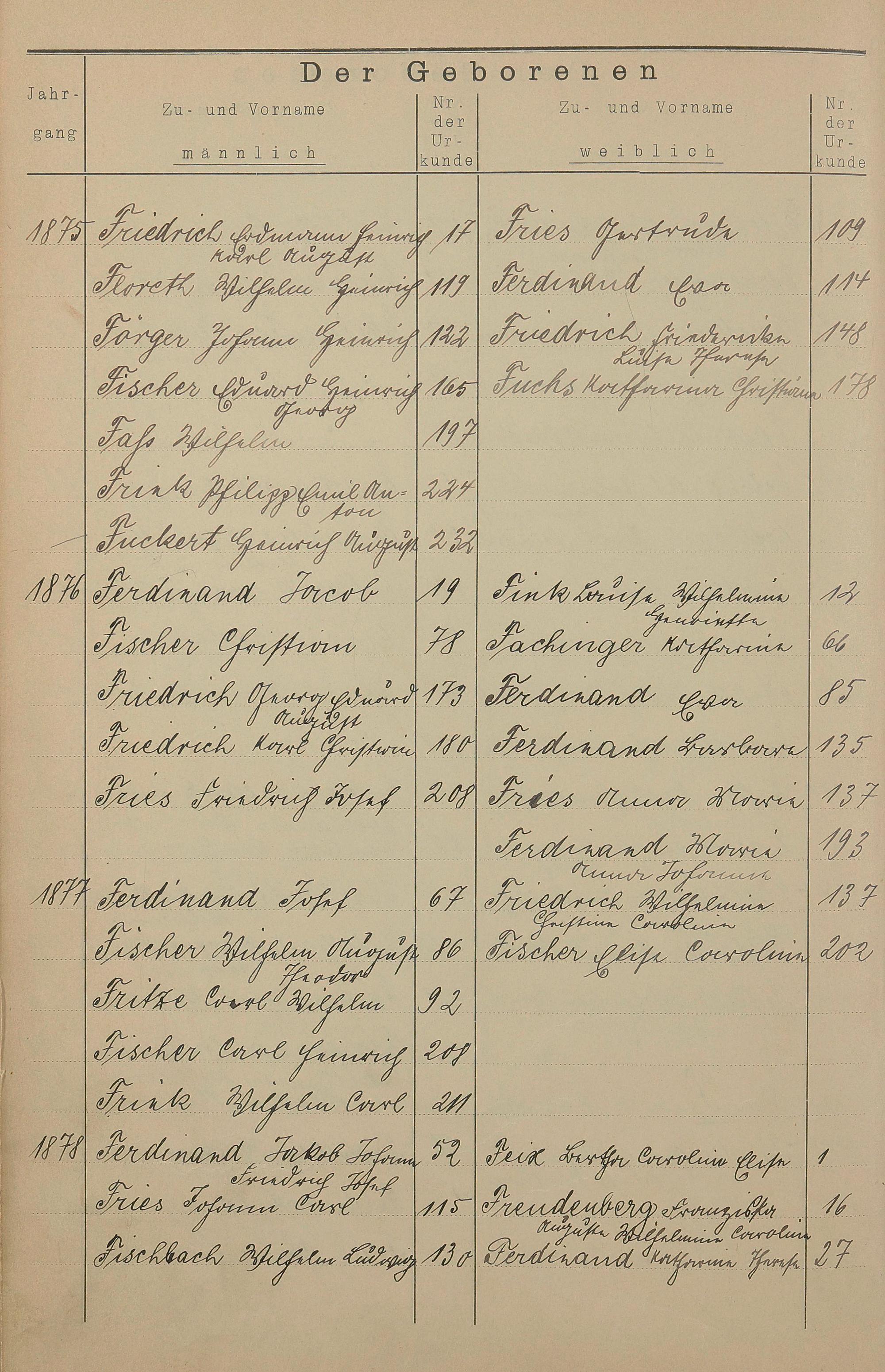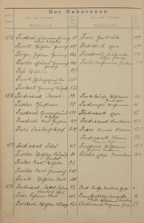 Register A - Z zum Geburtsregister 1874-1900
