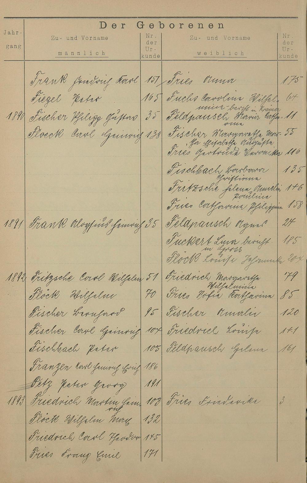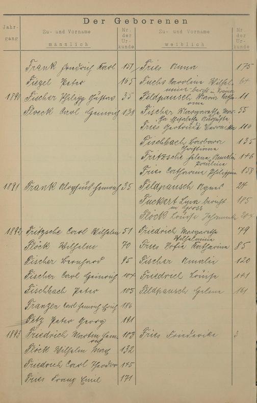 Register A - Z zum Geburtsregister 1874-1900