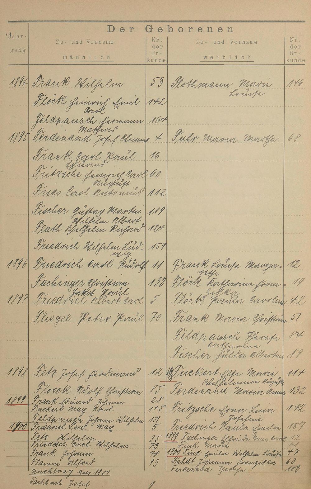 1554: Register A - Z zum Geburtsregister 1874-1900