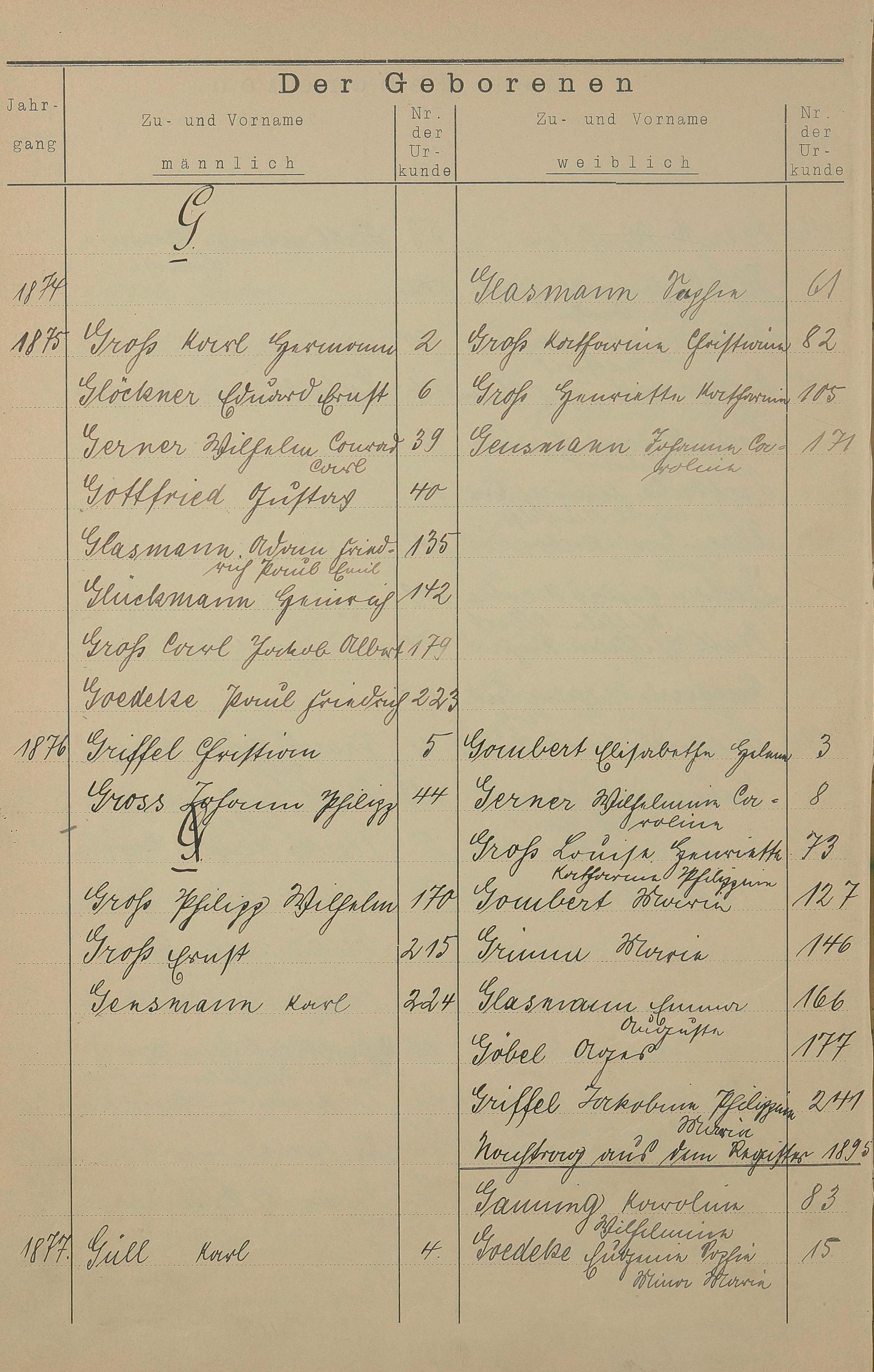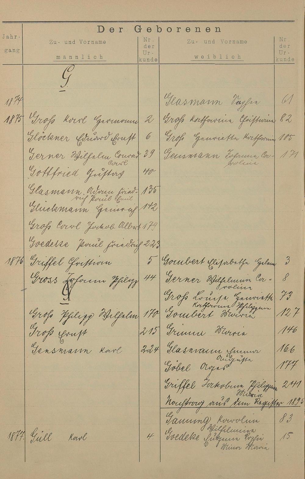 Register A - Z zum Geburtsregister 1874-1900