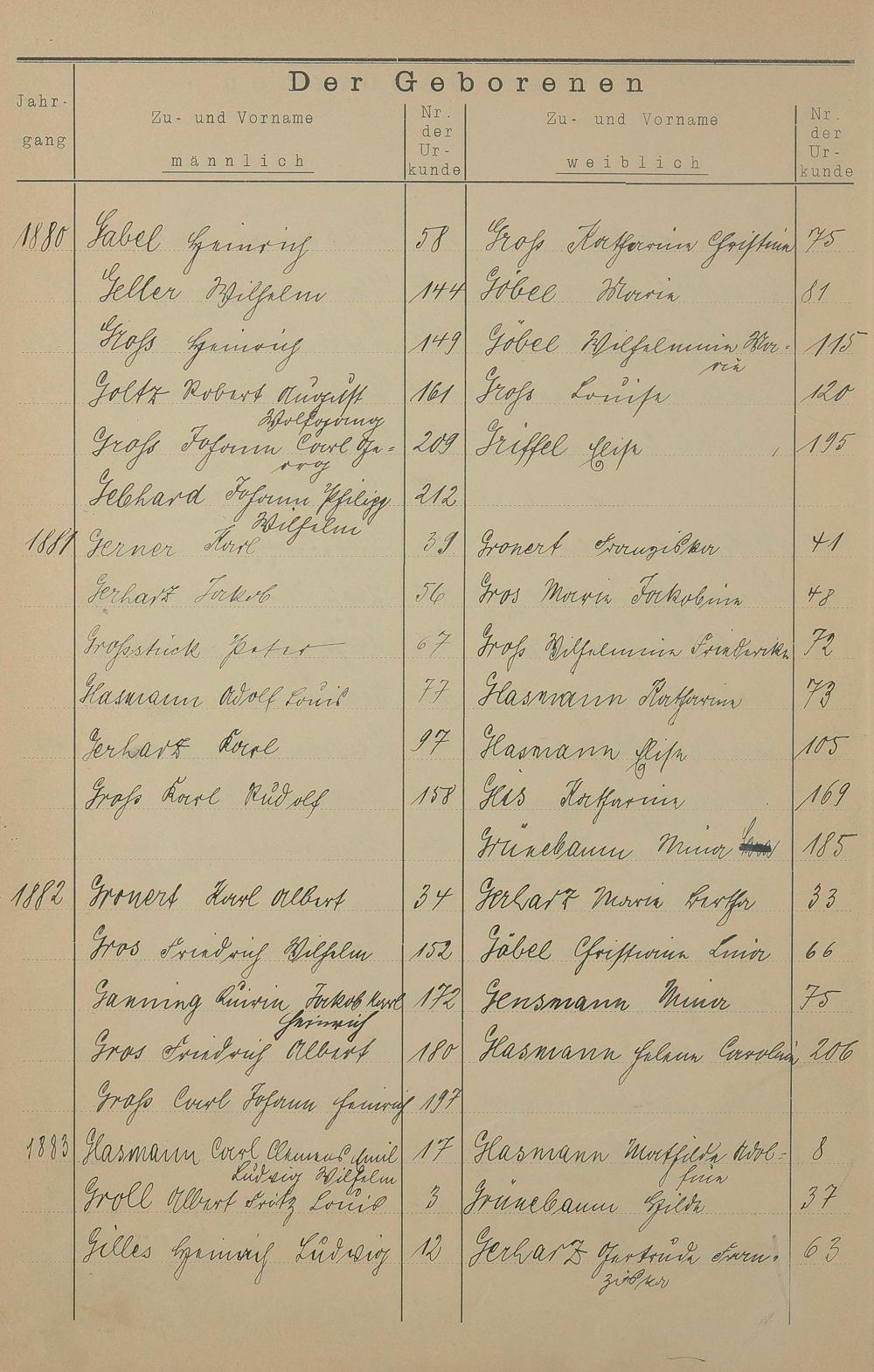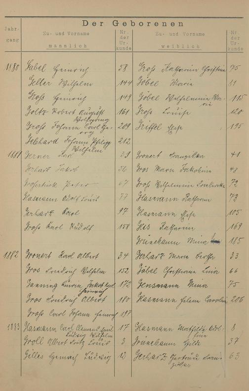 Register A - Z zum Geburtsregister 1874-1900