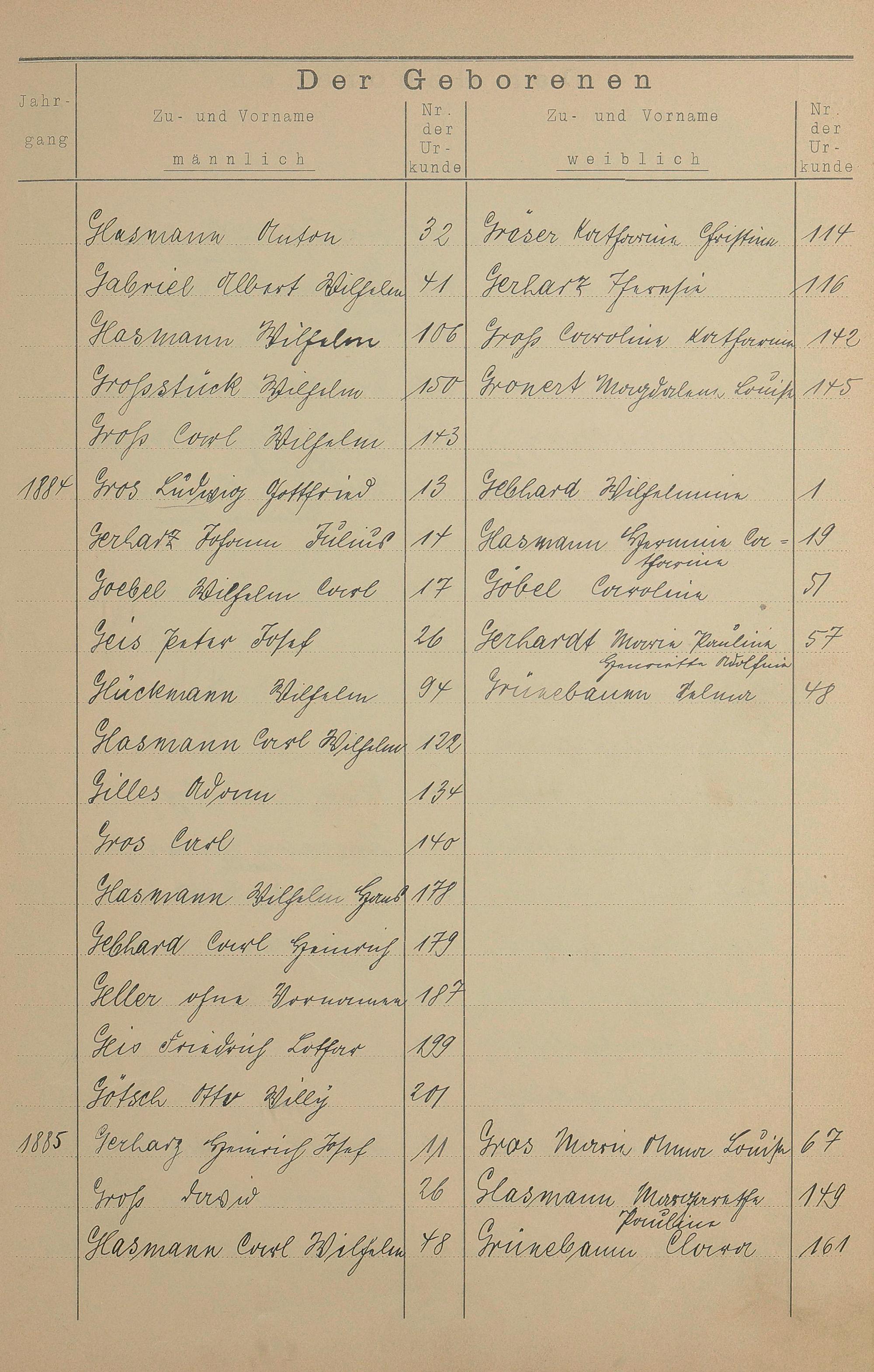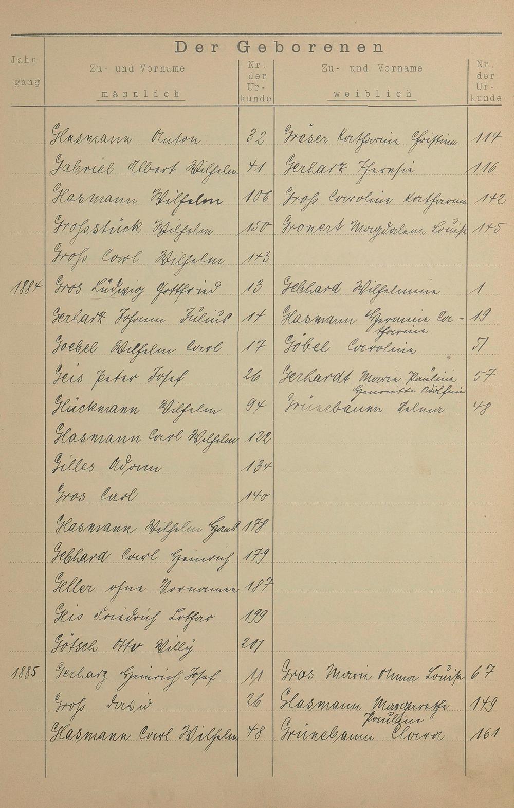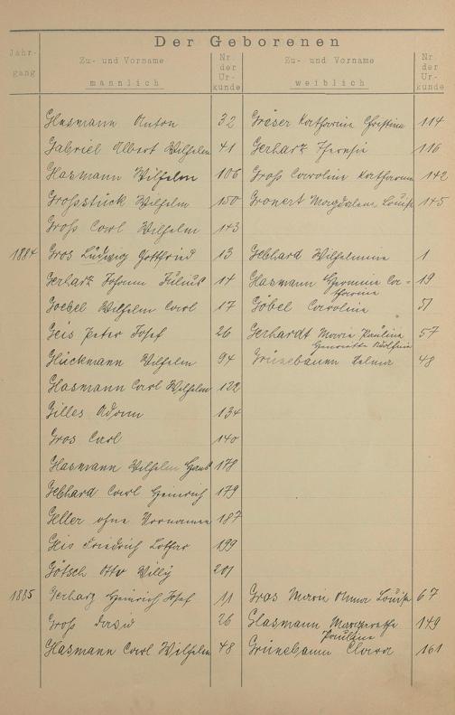 Register A - Z zum Geburtsregister 1874-1900