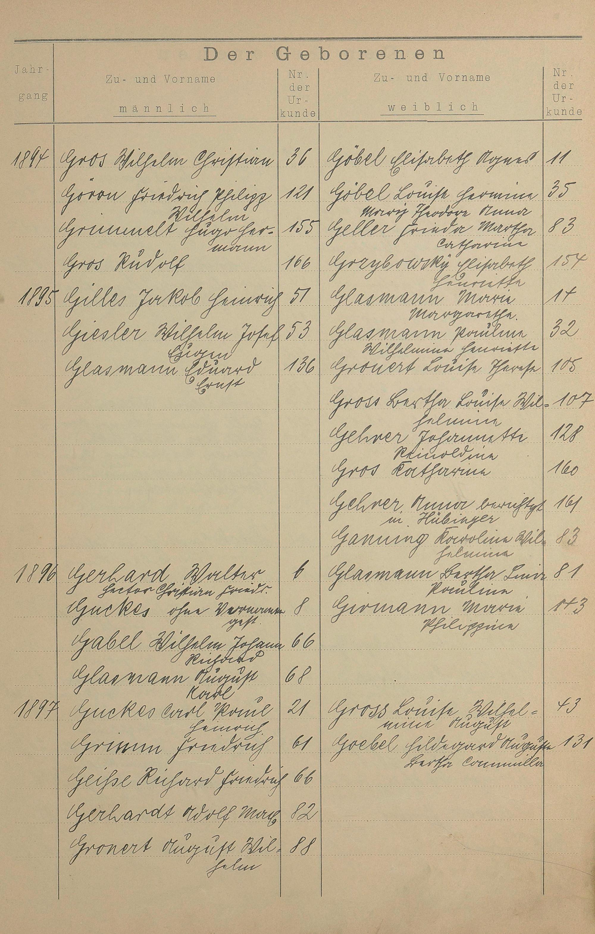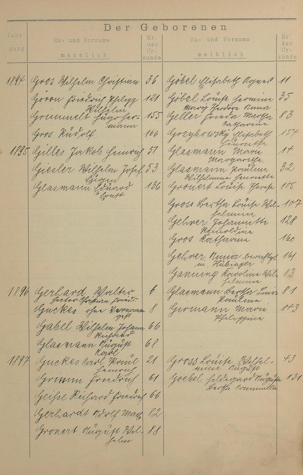 1554: Register A - Z zum Geburtsregister 1874-1900