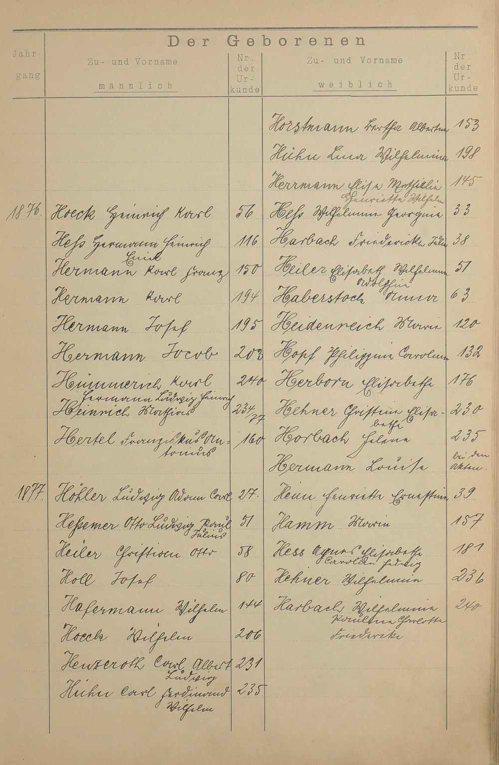 Register A - Z zum Geburtsregister 1874-1900
