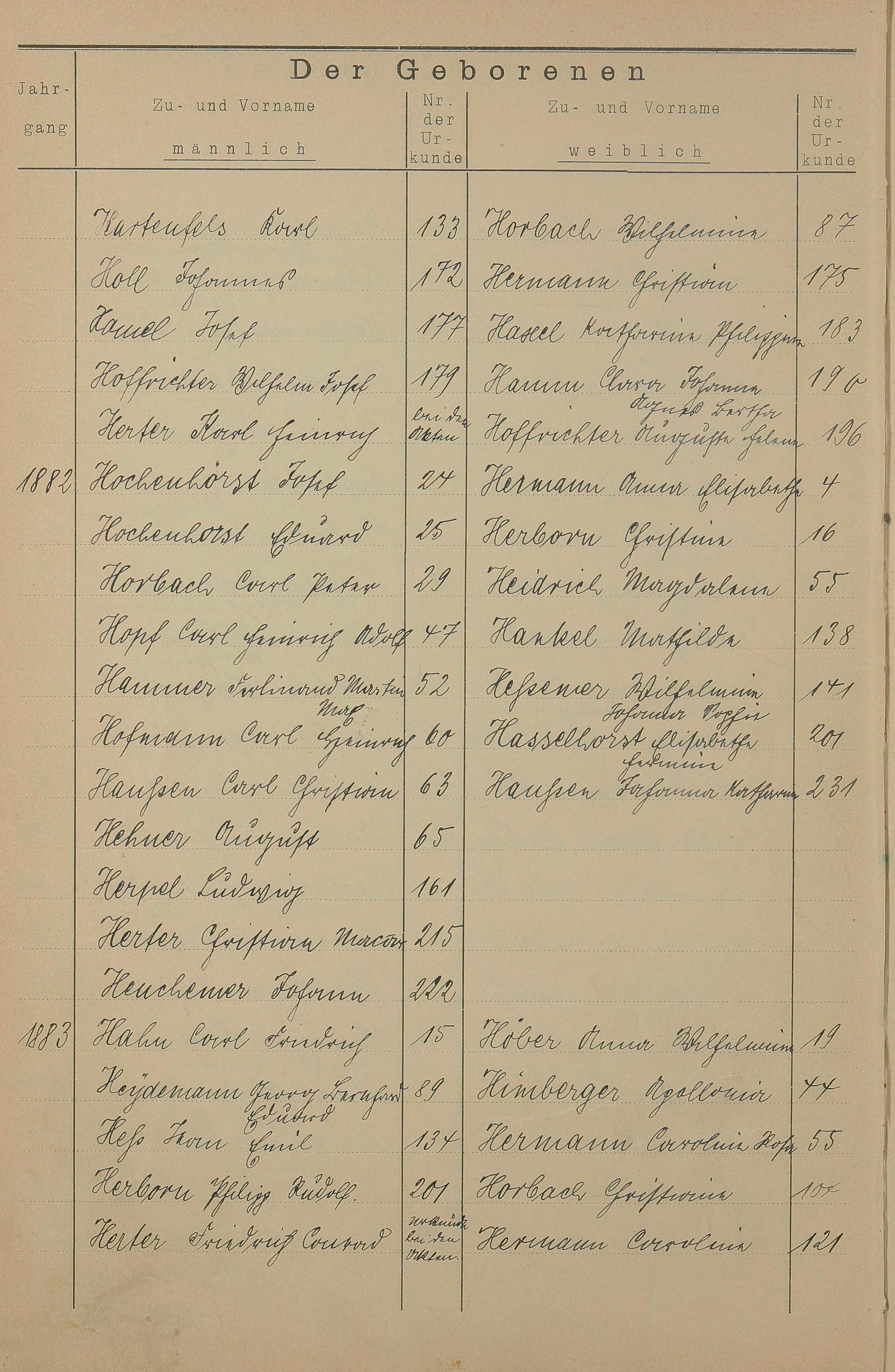 1554: Register A - Z zum Geburtsregister 1874-1900