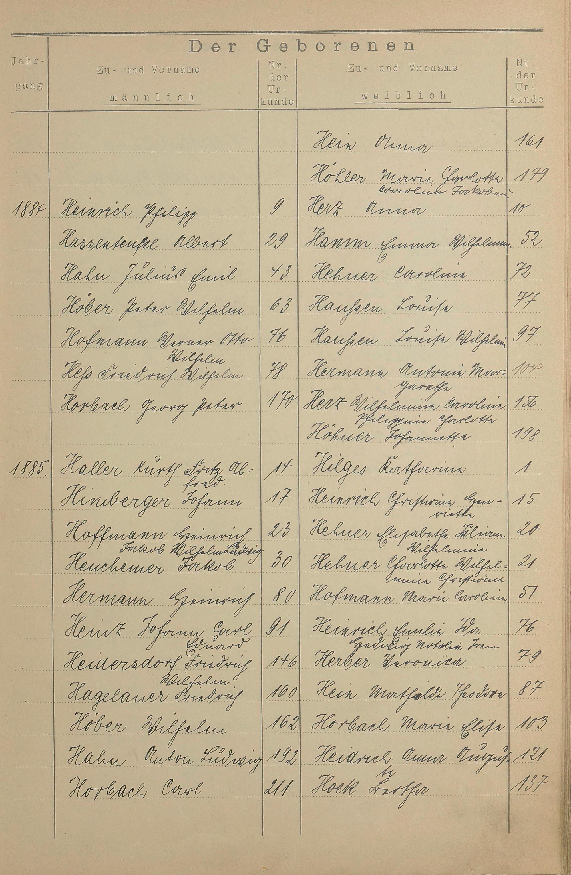 Register A - Z zum Geburtsregister 1874-1900