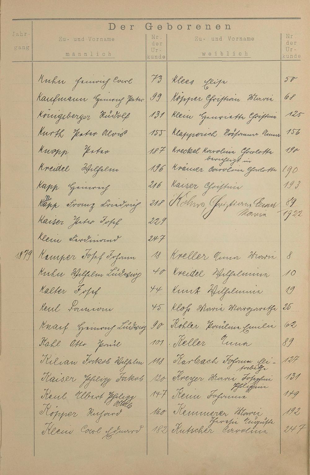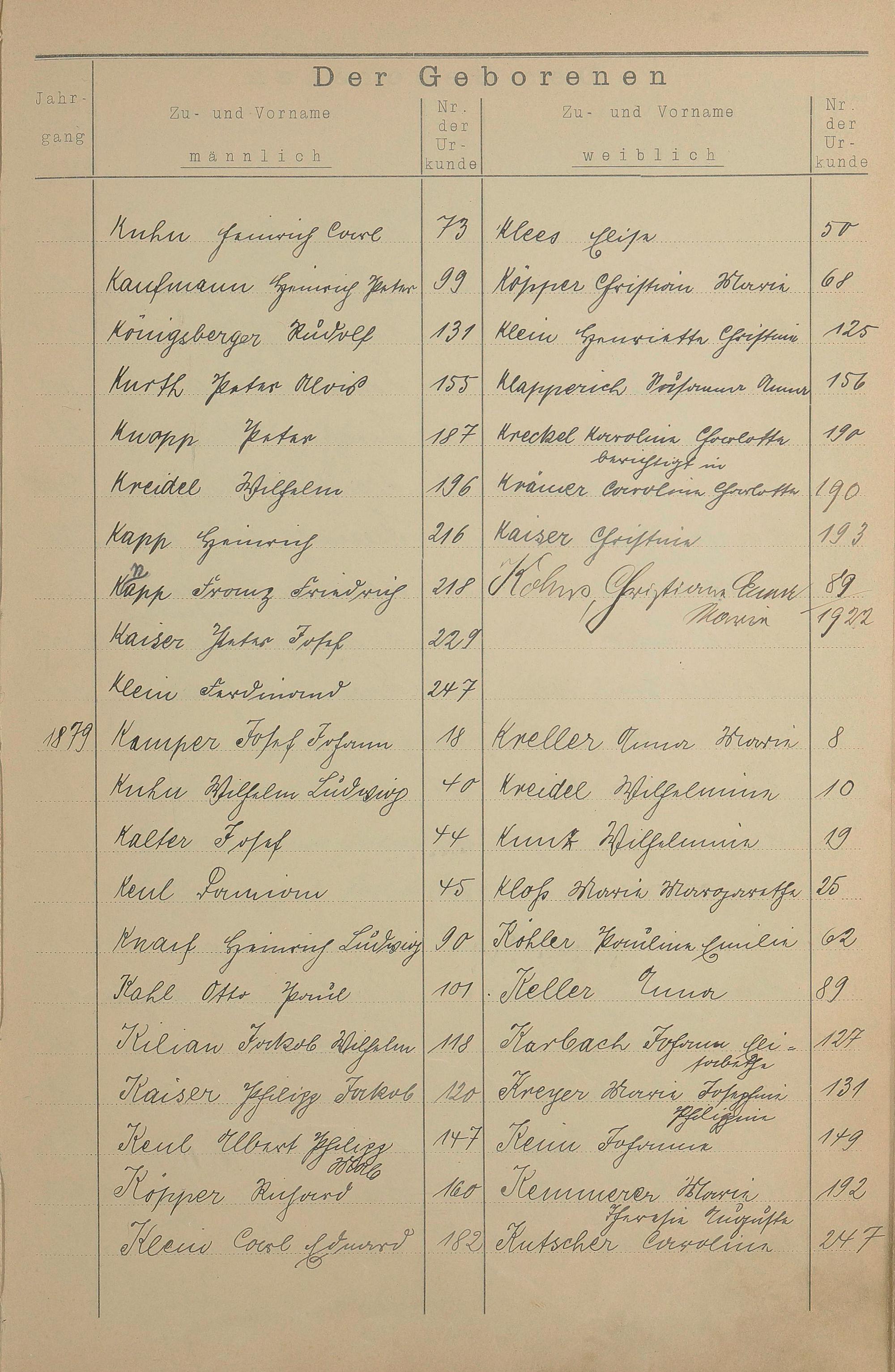 1554: Register A - Z zum Geburtsregister 1874-1900