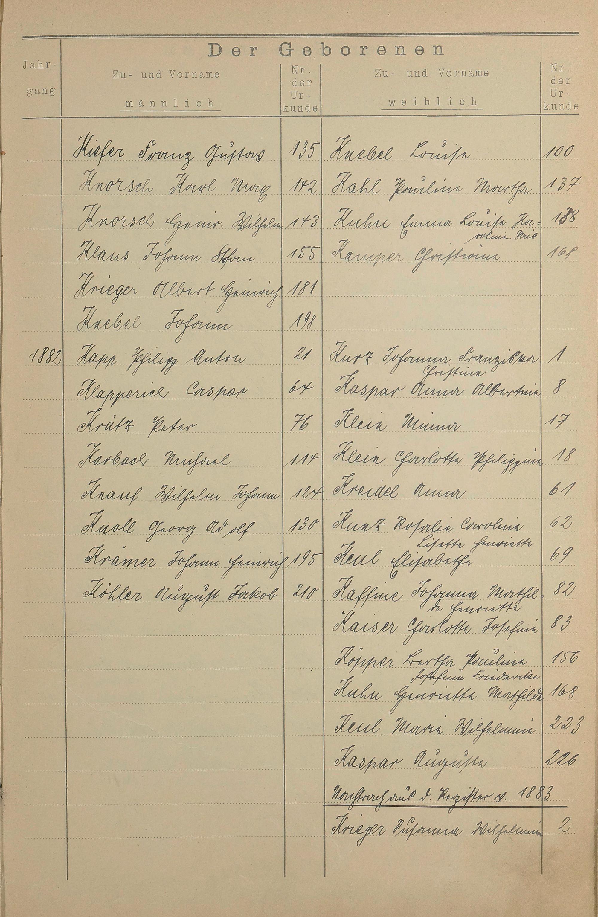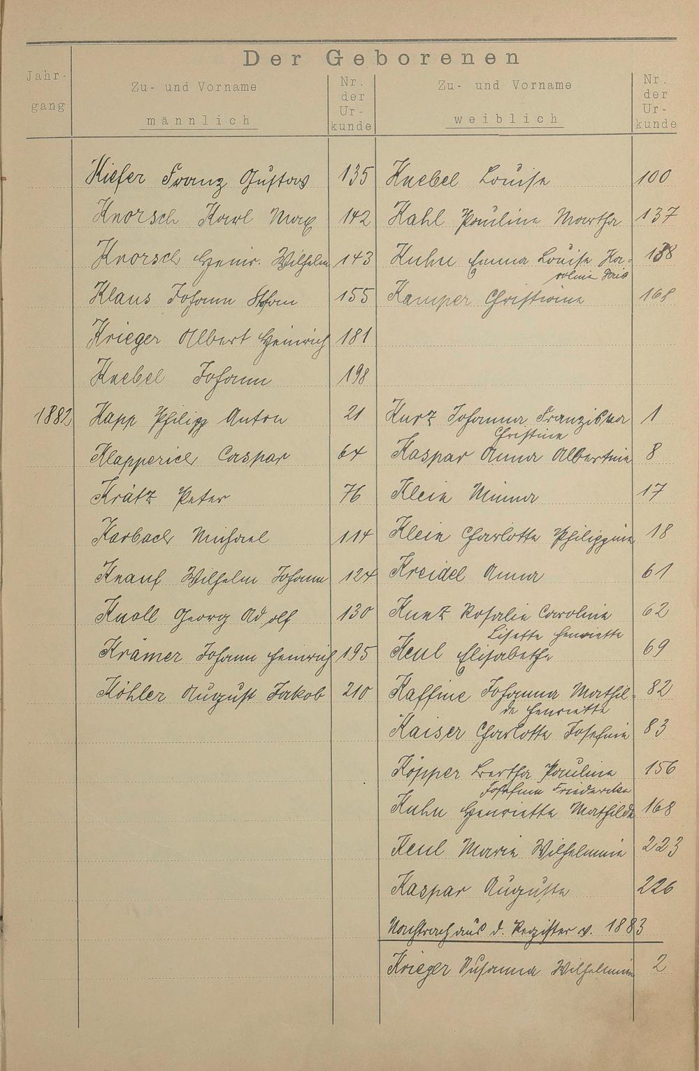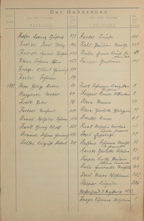 Register A - Z zum Geburtsregister 1874-1900