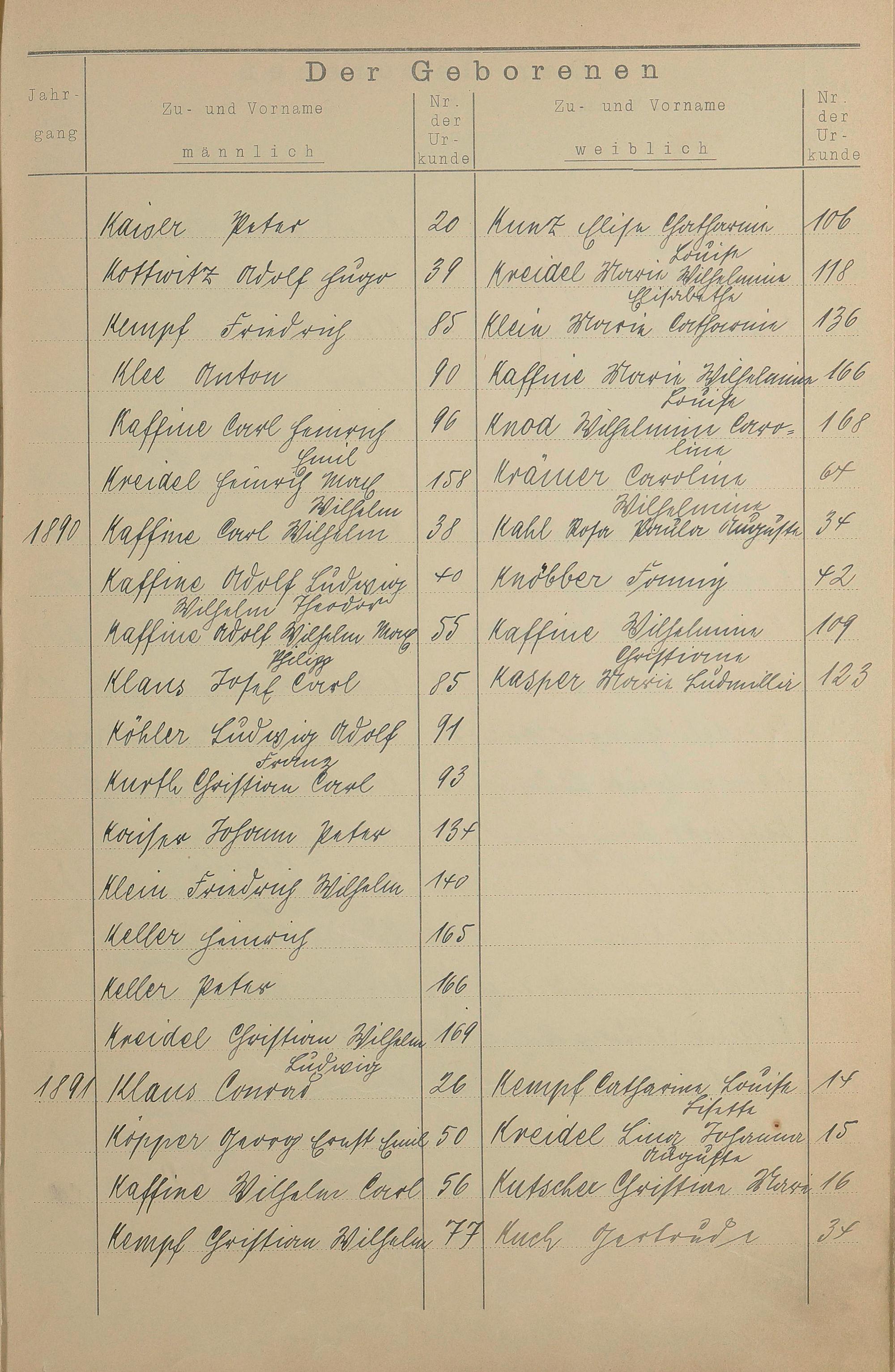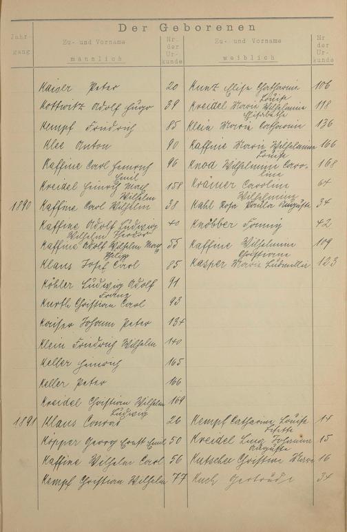 Register A - Z zum Geburtsregister 1874-1900