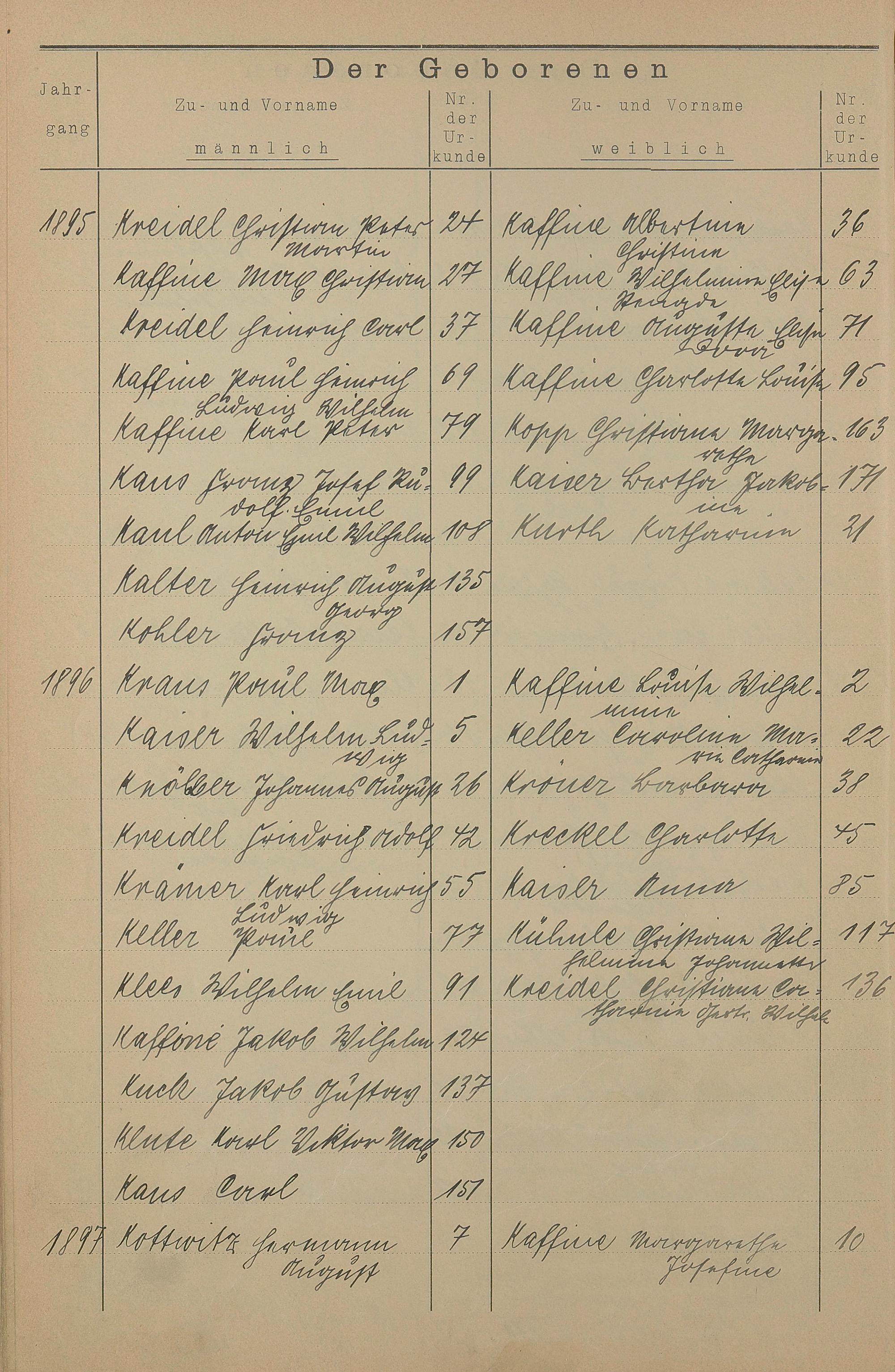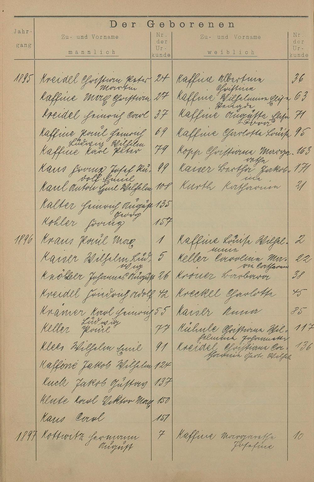 1554: Register A - Z zum Geburtsregister 1874-1900