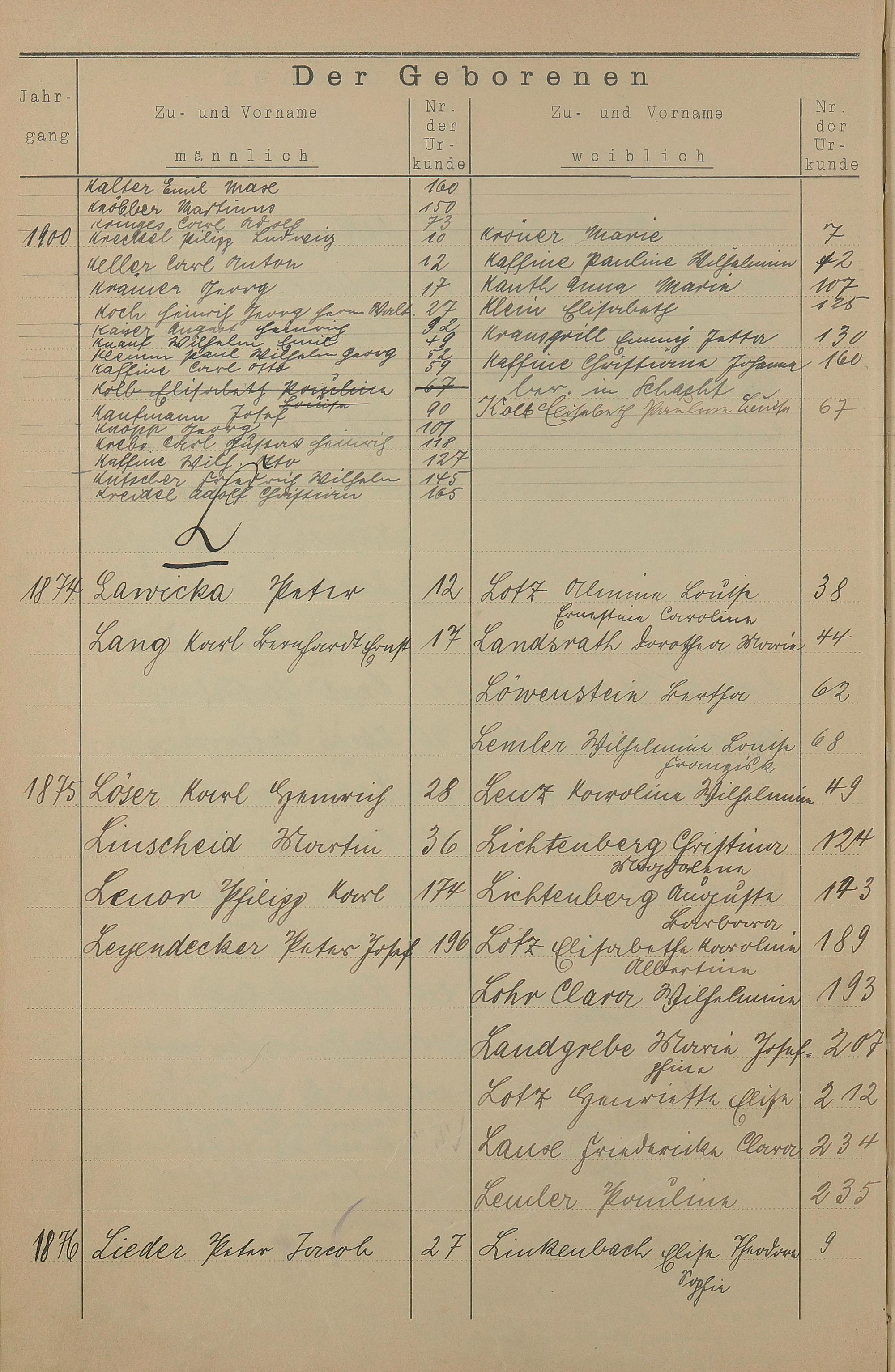 1554: Register A - Z zum Geburtsregister 1874-1900