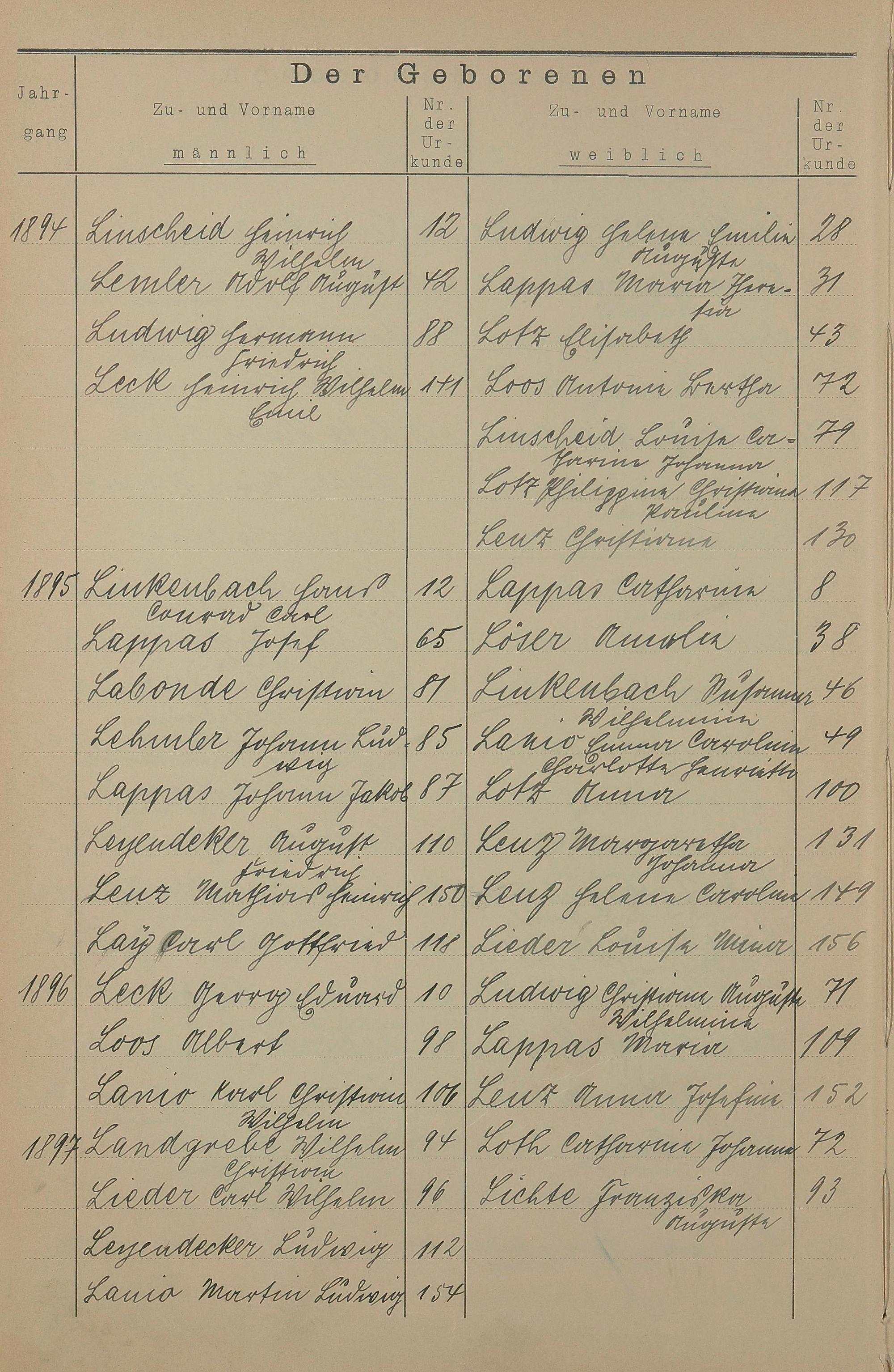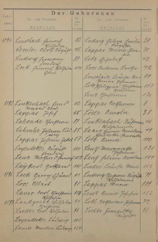Register A - Z zum Geburtsregister 1874-1900