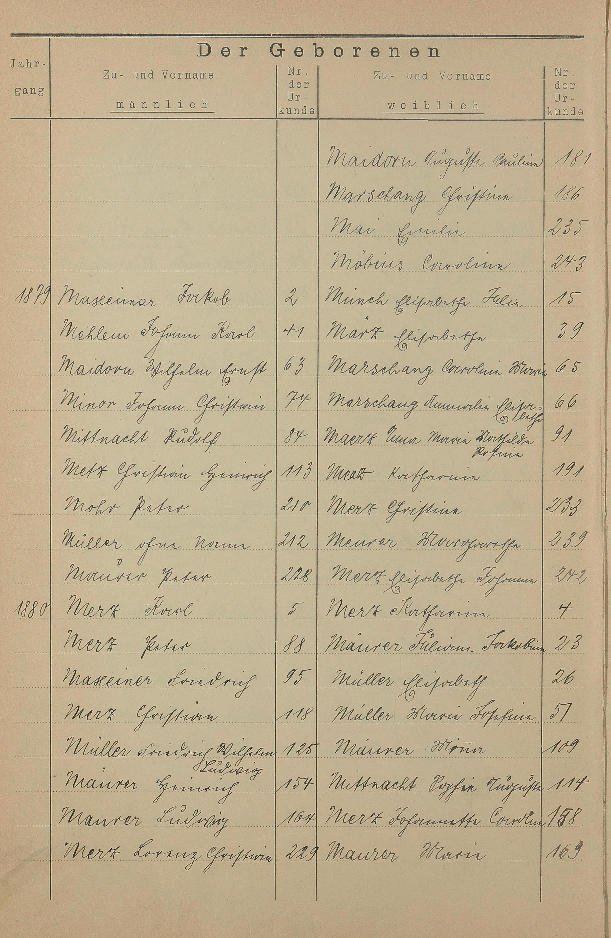 Register A - Z zum Geburtsregister 1874-1900