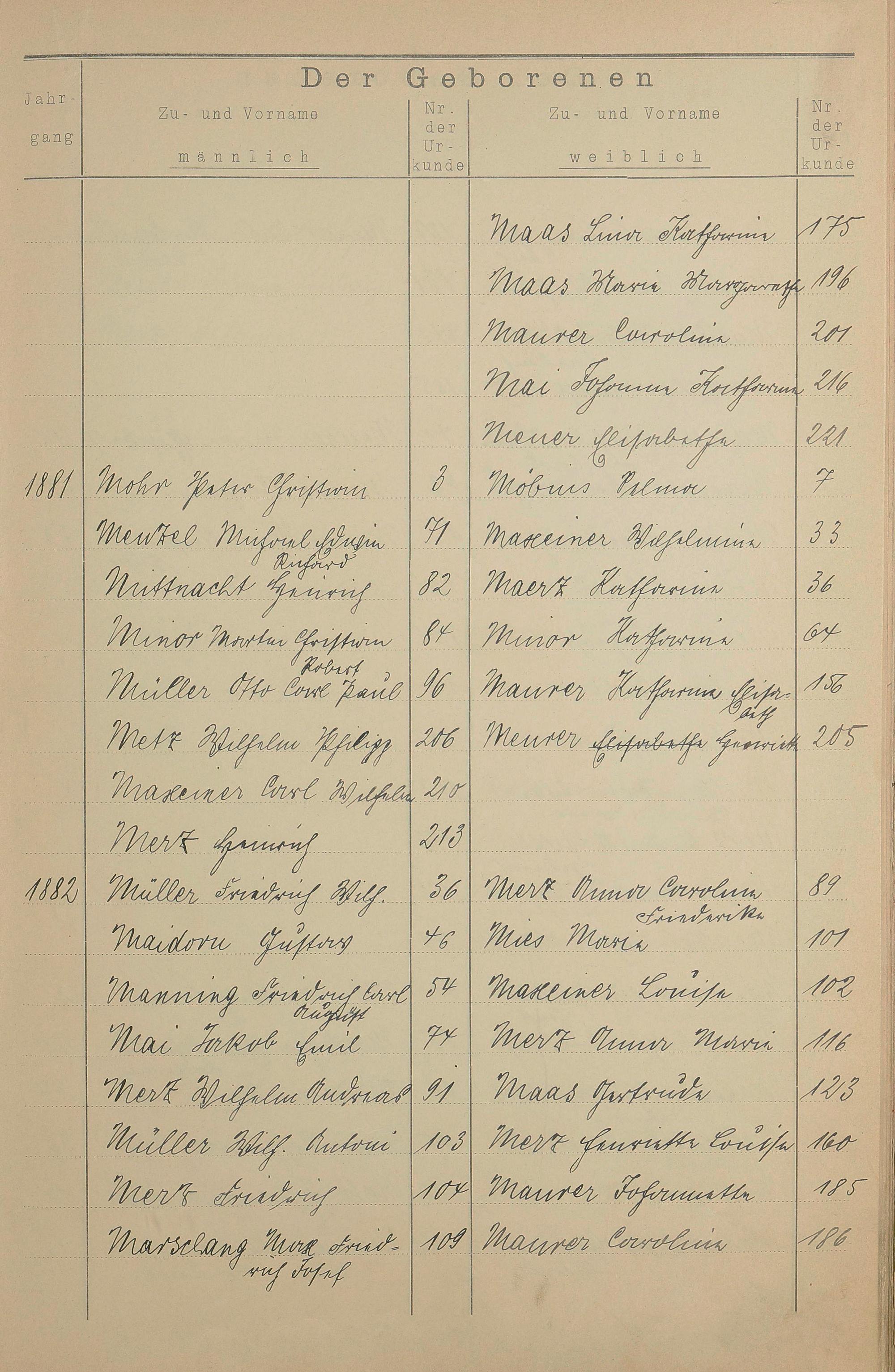 Register A - Z zum Geburtsregister 1874-1900
