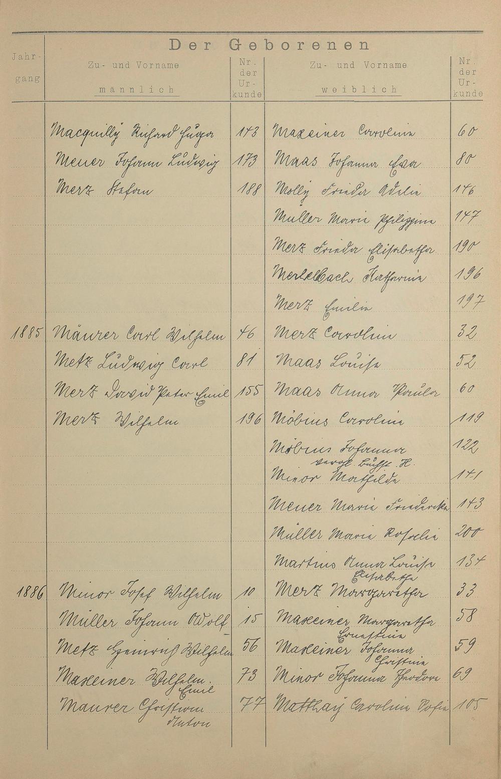 Register A - Z zum Geburtsregister 1874-1900