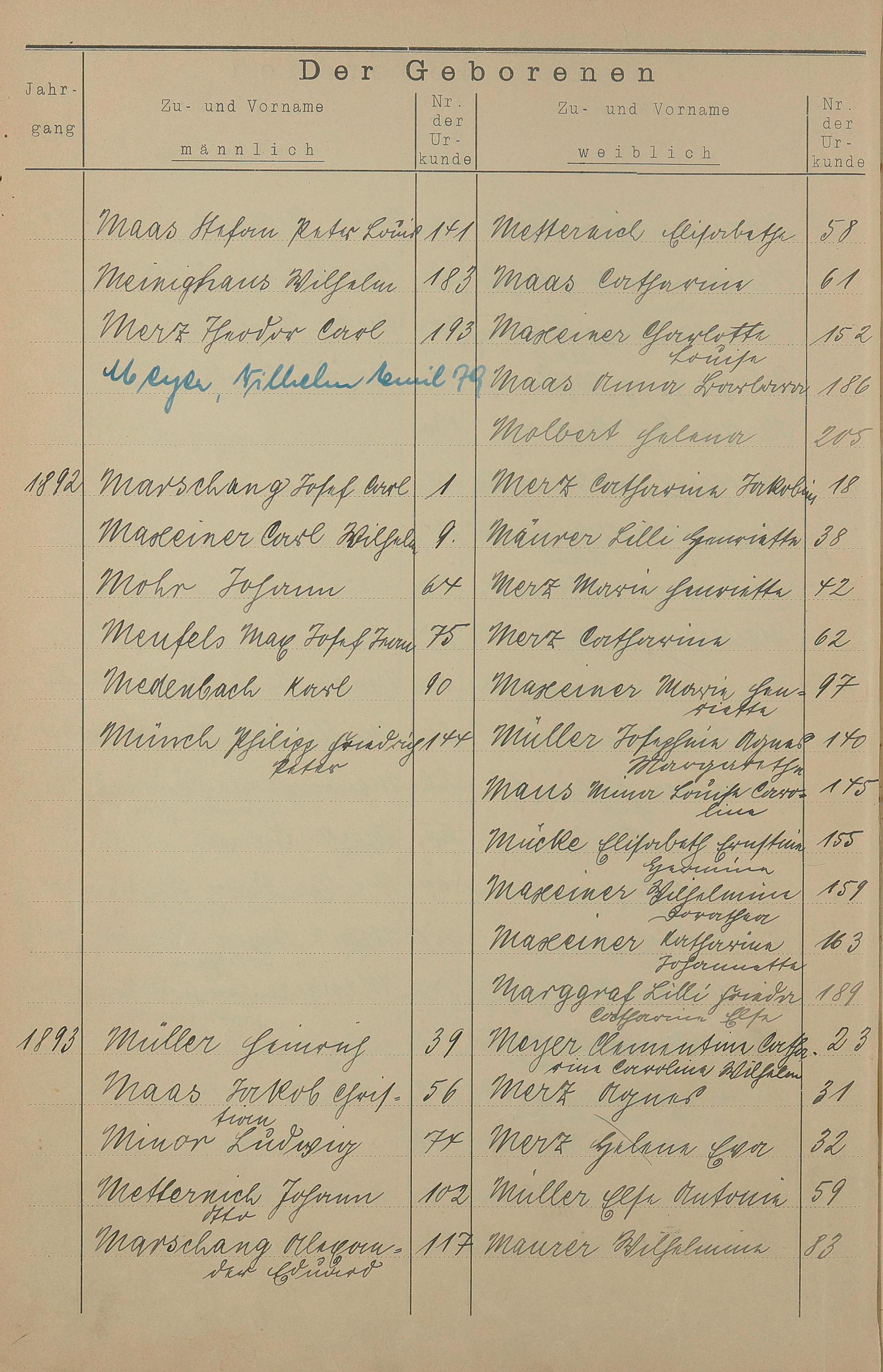 1554: Register A - Z zum Geburtsregister 1874-1900