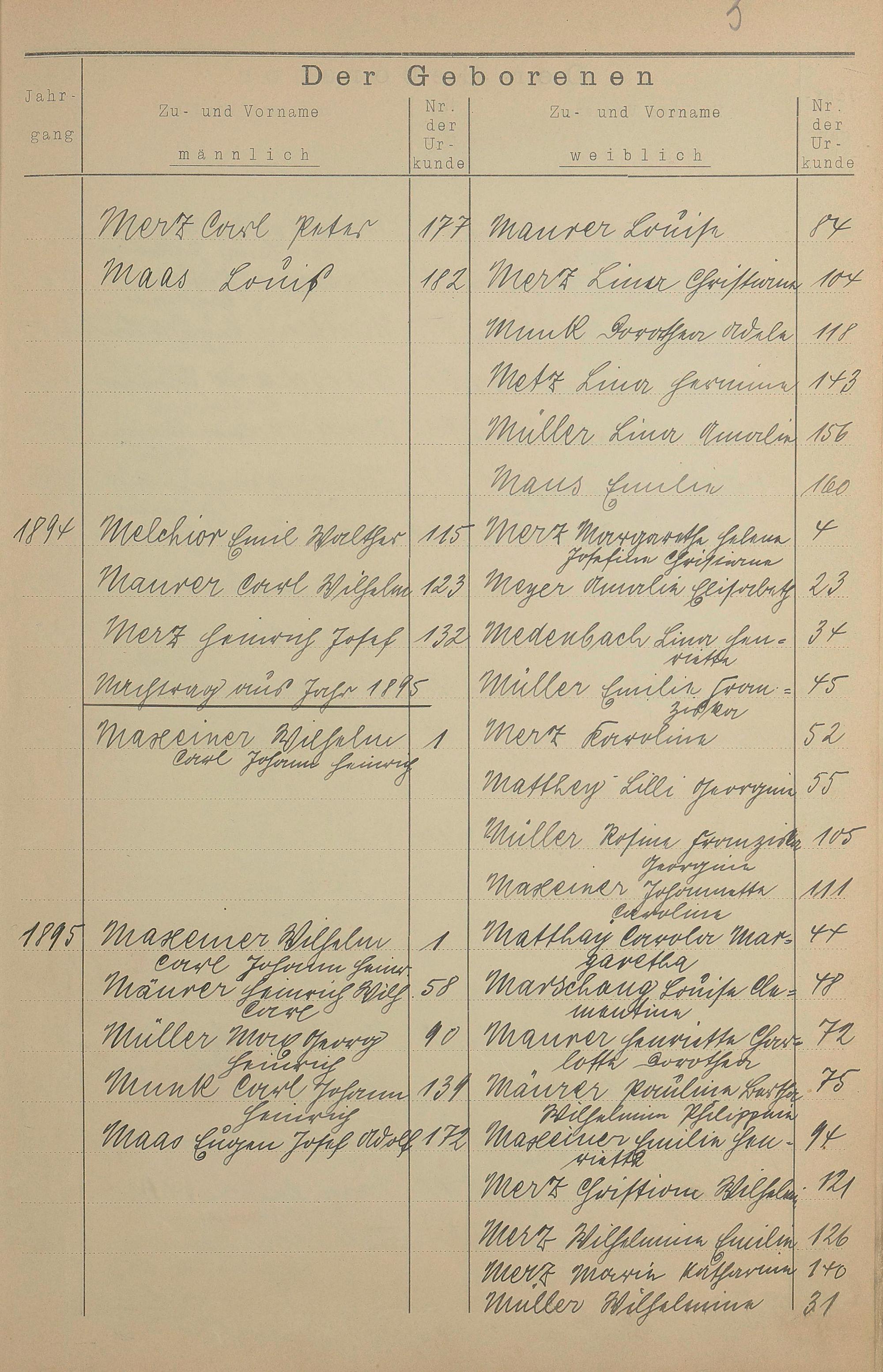Register A - Z zum Geburtsregister 1874-1900