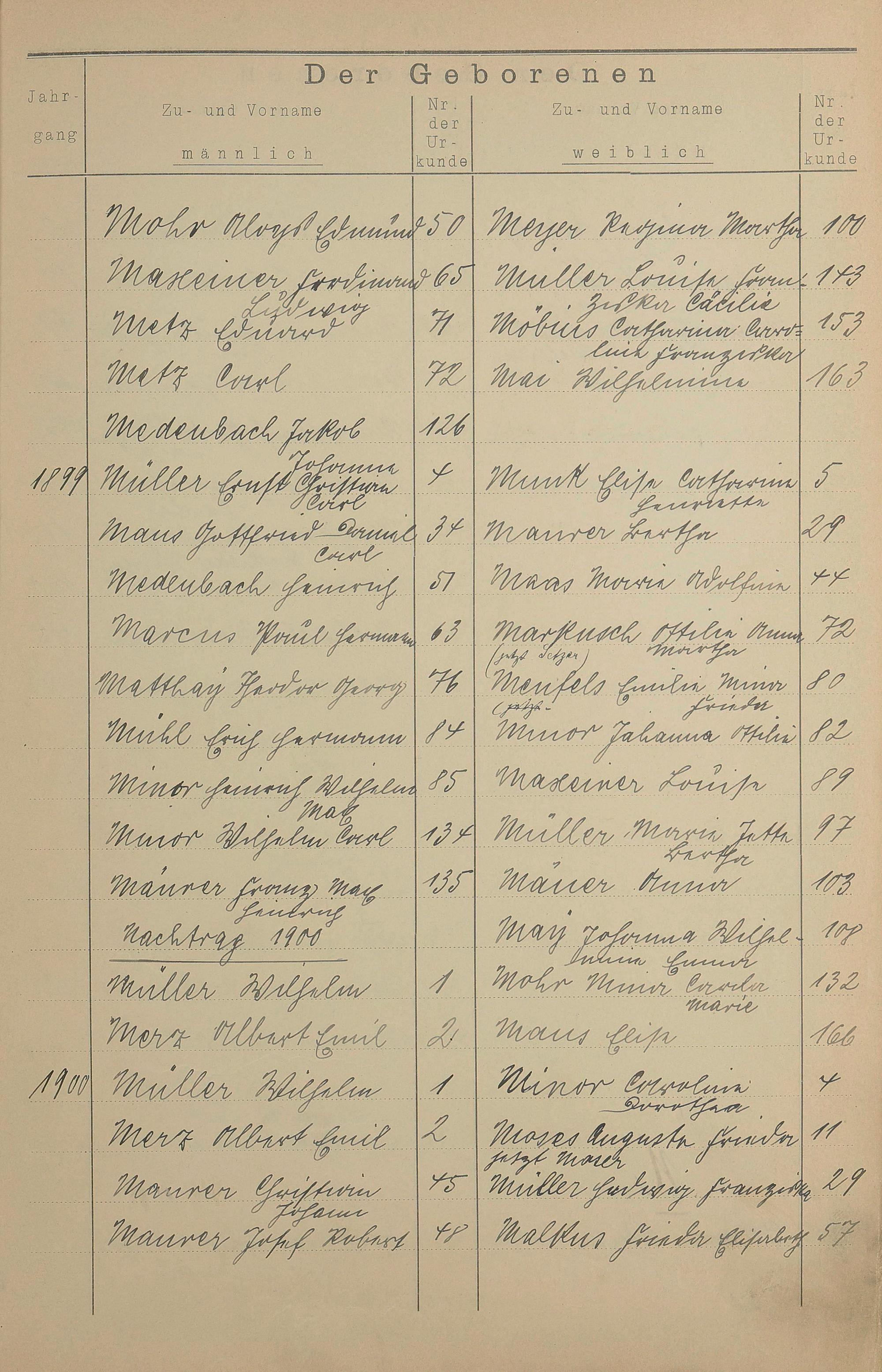 1554: Register A - Z zum Geburtsregister 1874-1900