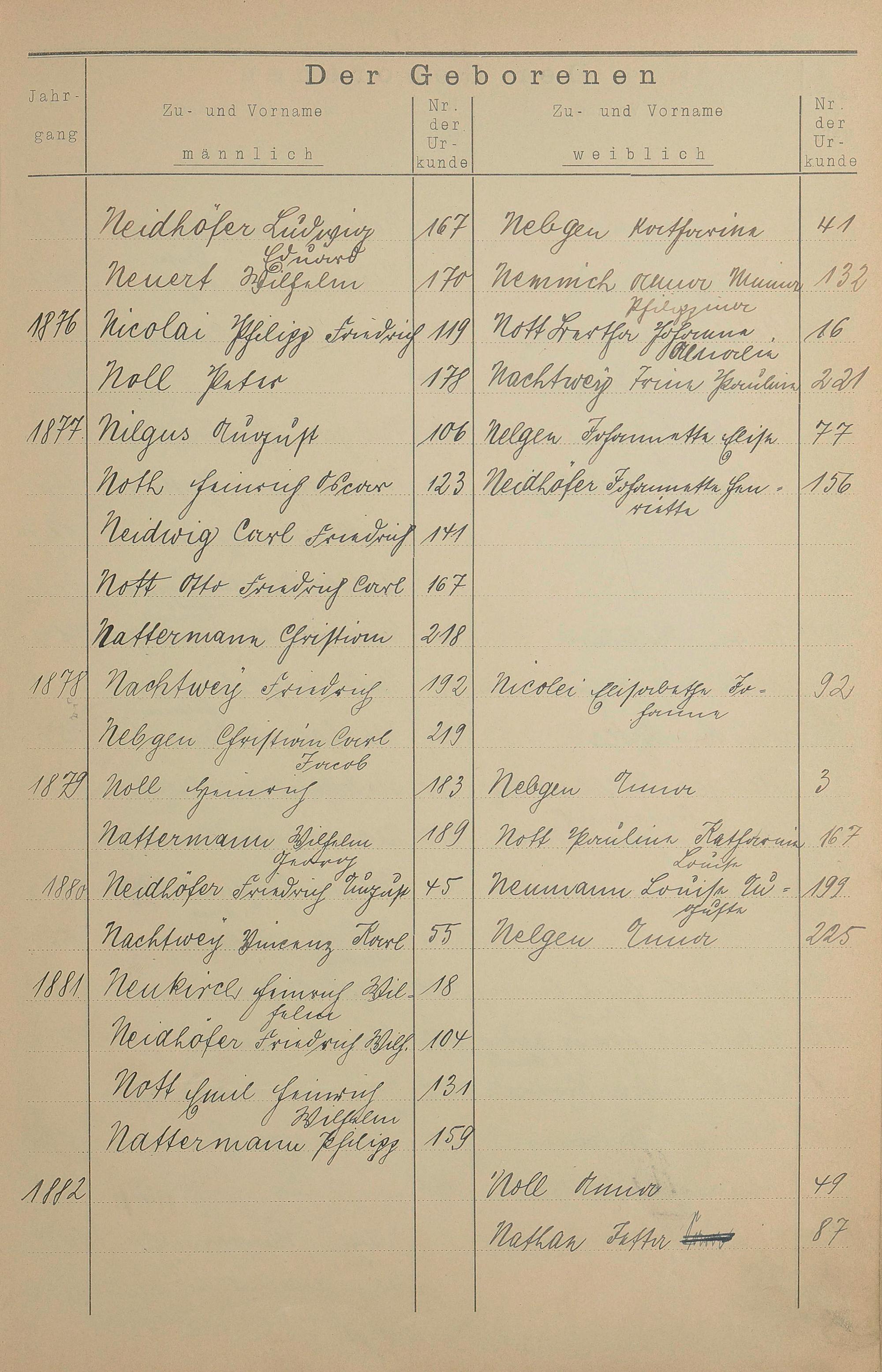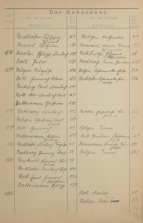 Register A - Z zum Geburtsregister 1874-1900