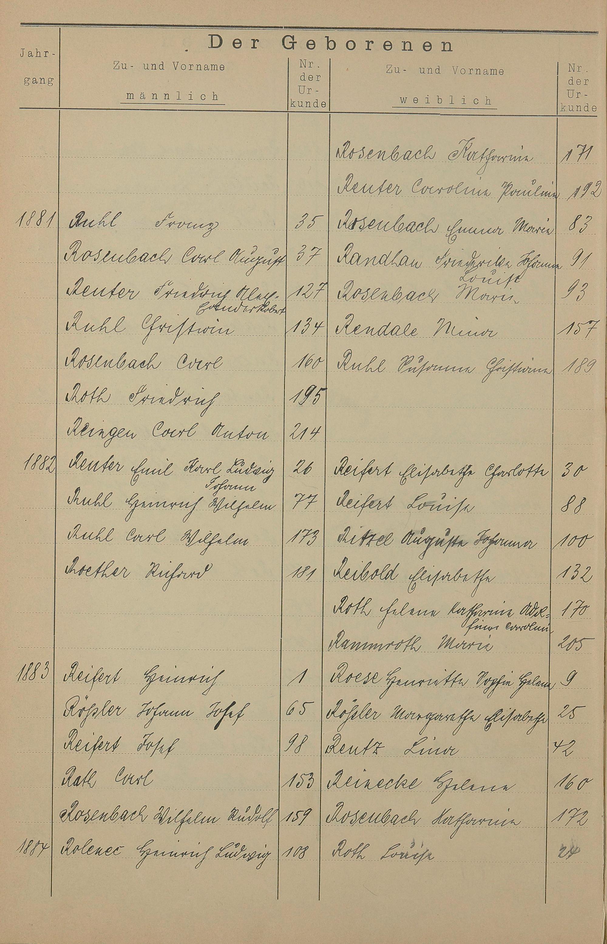 Register A - Z zum Geburtsregister 1874-1900