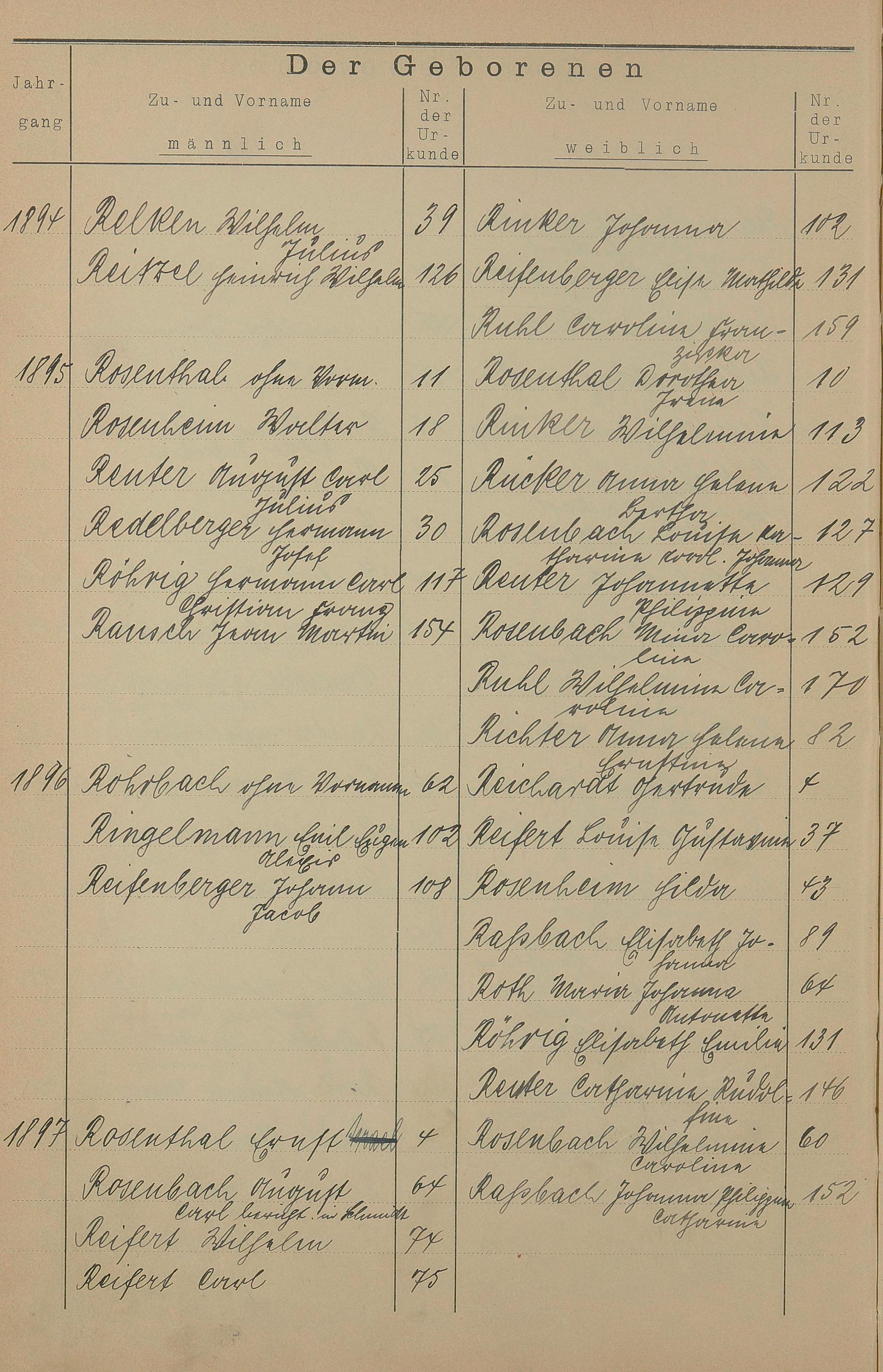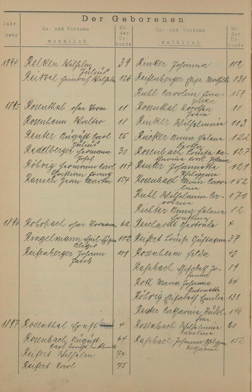 Register A - Z zum Geburtsregister 1874-1900