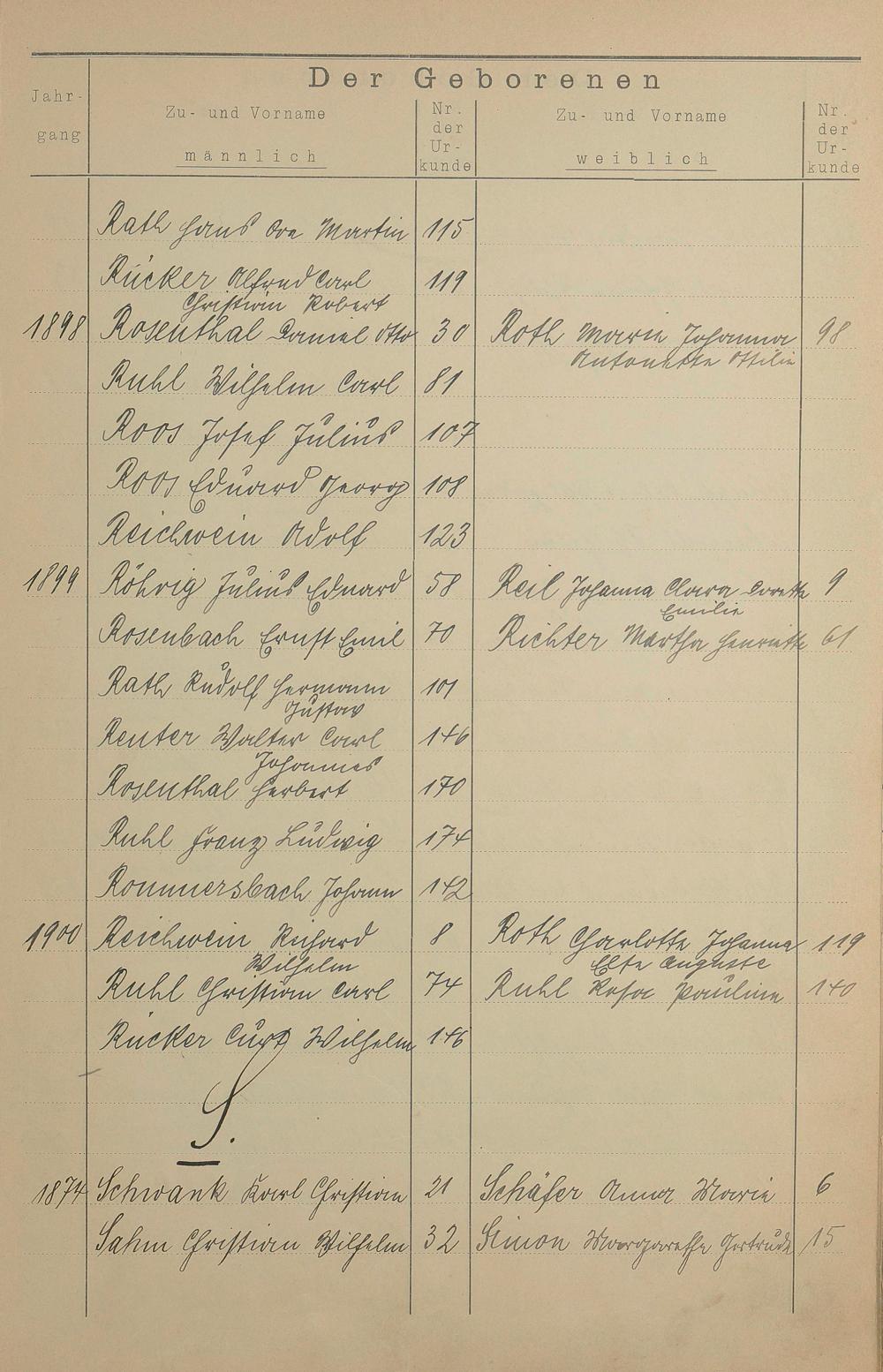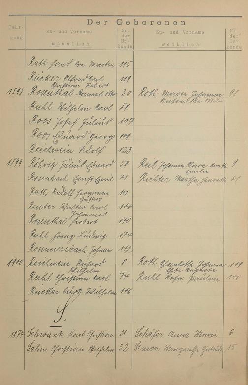 Register A - Z zum Geburtsregister 1874-1900