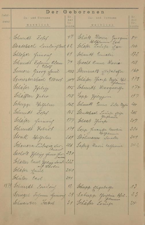 Register A - Z zum Geburtsregister 1874-1900