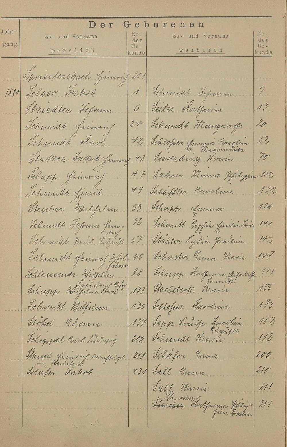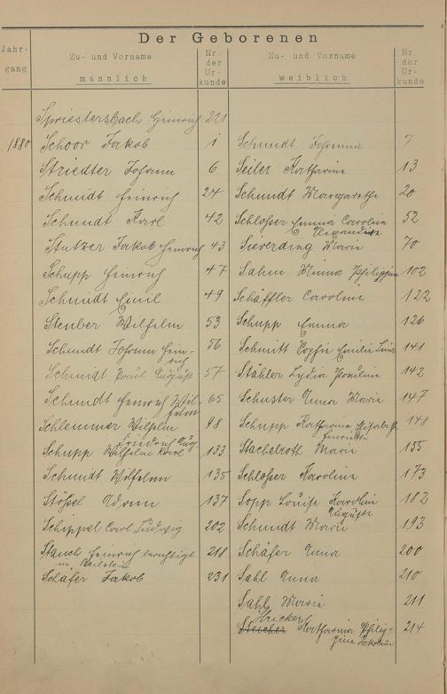 Register A - Z zum Geburtsregister 1874-1900