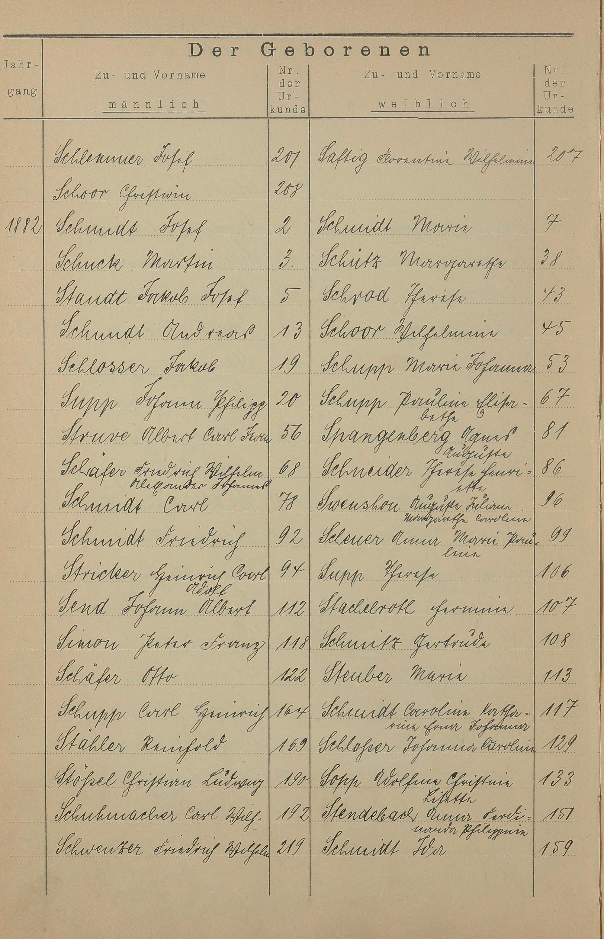Register A - Z zum Geburtsregister 1874-1900