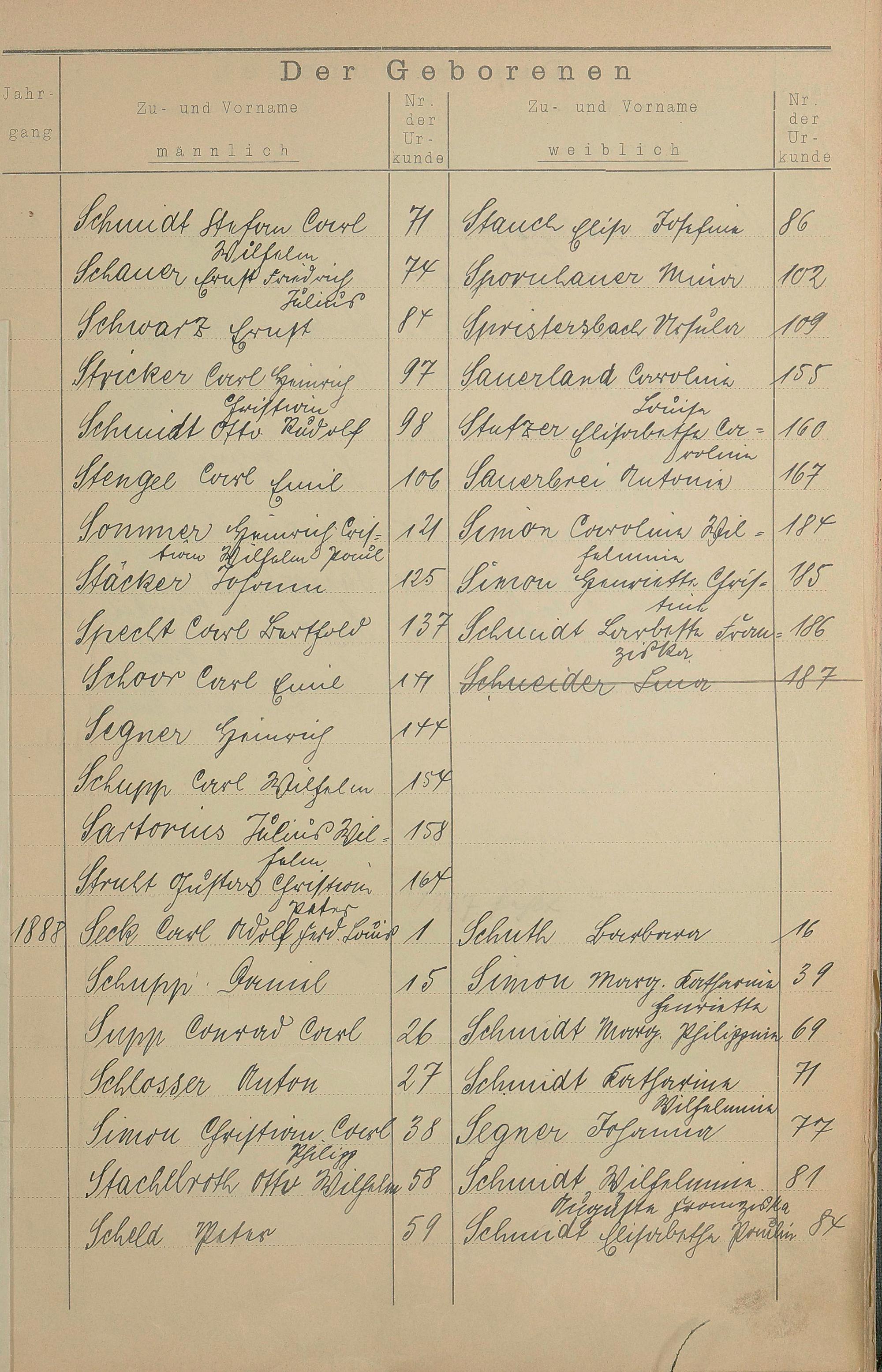 1554: Register A - Z zum Geburtsregister 1874-1900