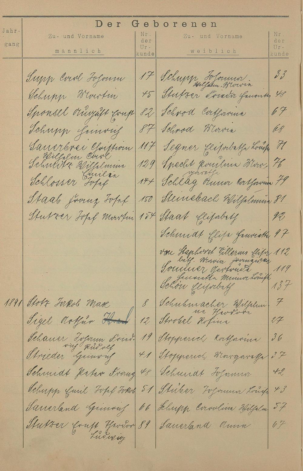 Register A - Z zum Geburtsregister 1874-1900