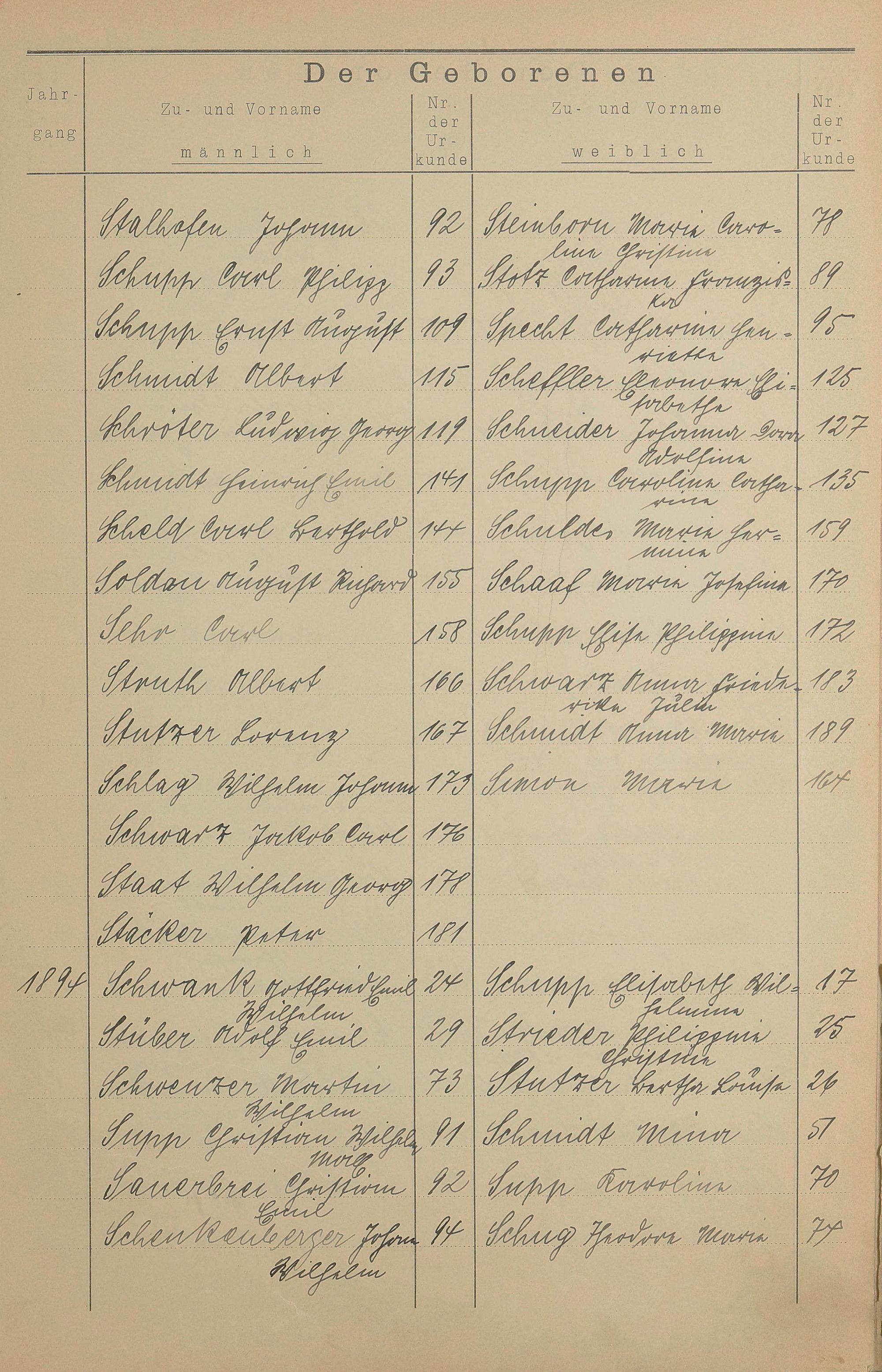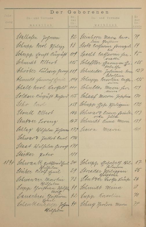 Register A - Z zum Geburtsregister 1874-1900