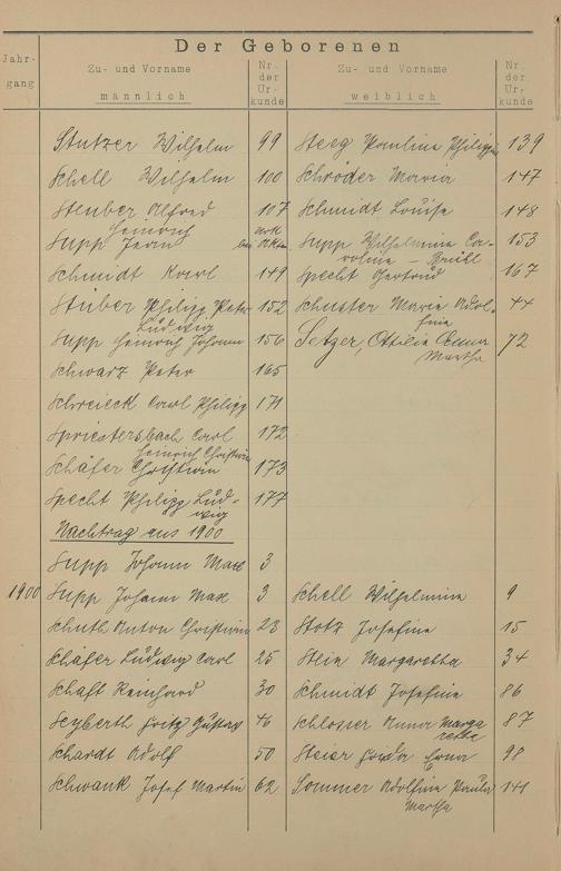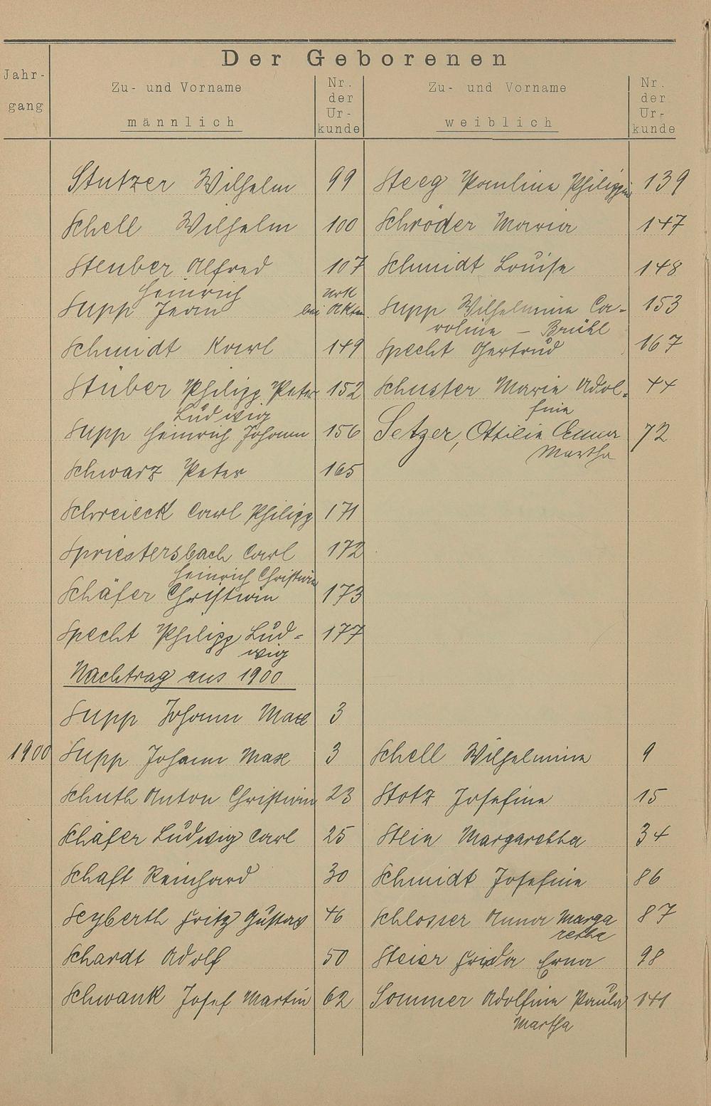 1554: Register A - Z zum Geburtsregister 1874-1900