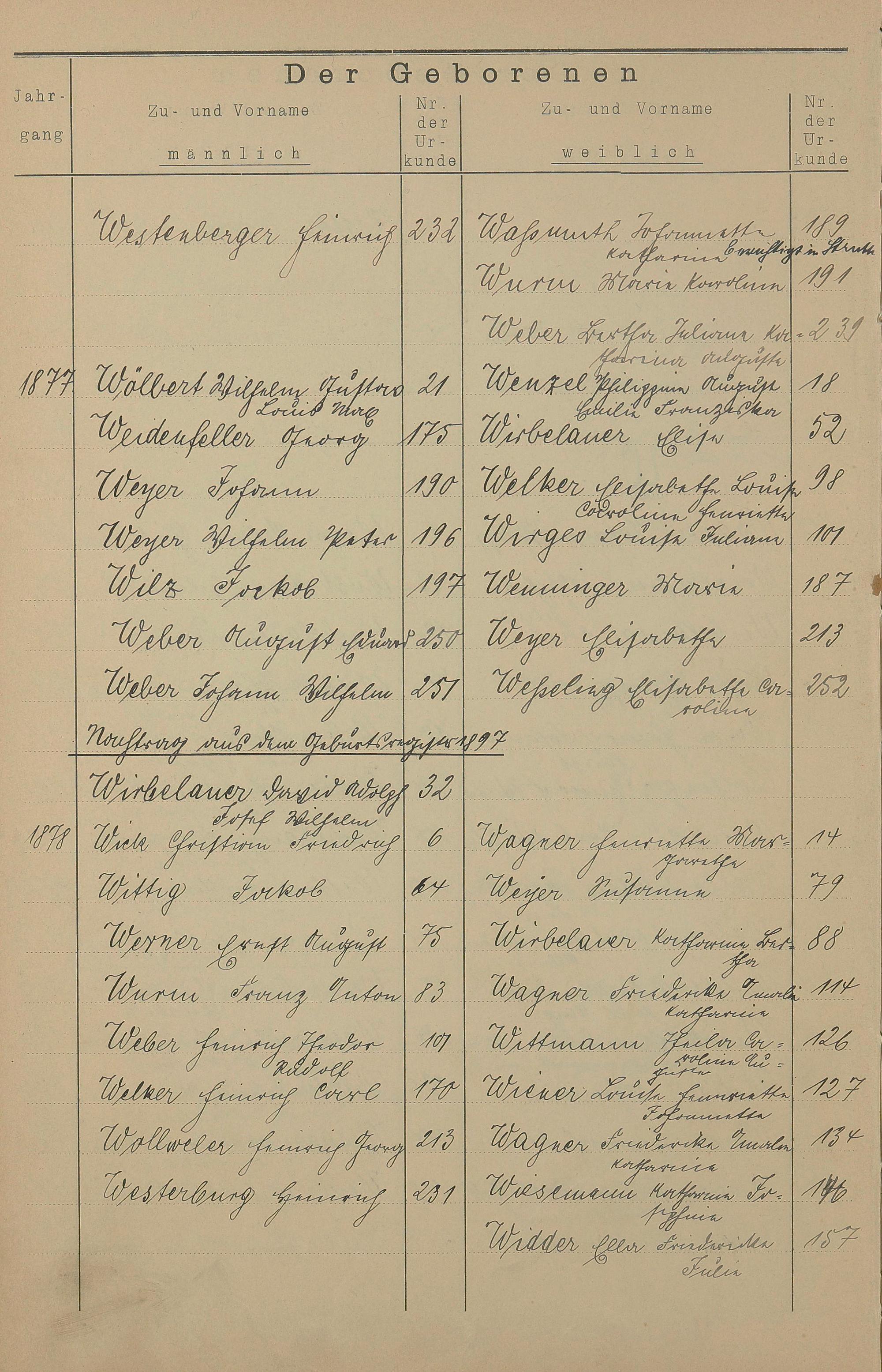 1554: Register A - Z zum Geburtsregister 1874-1900