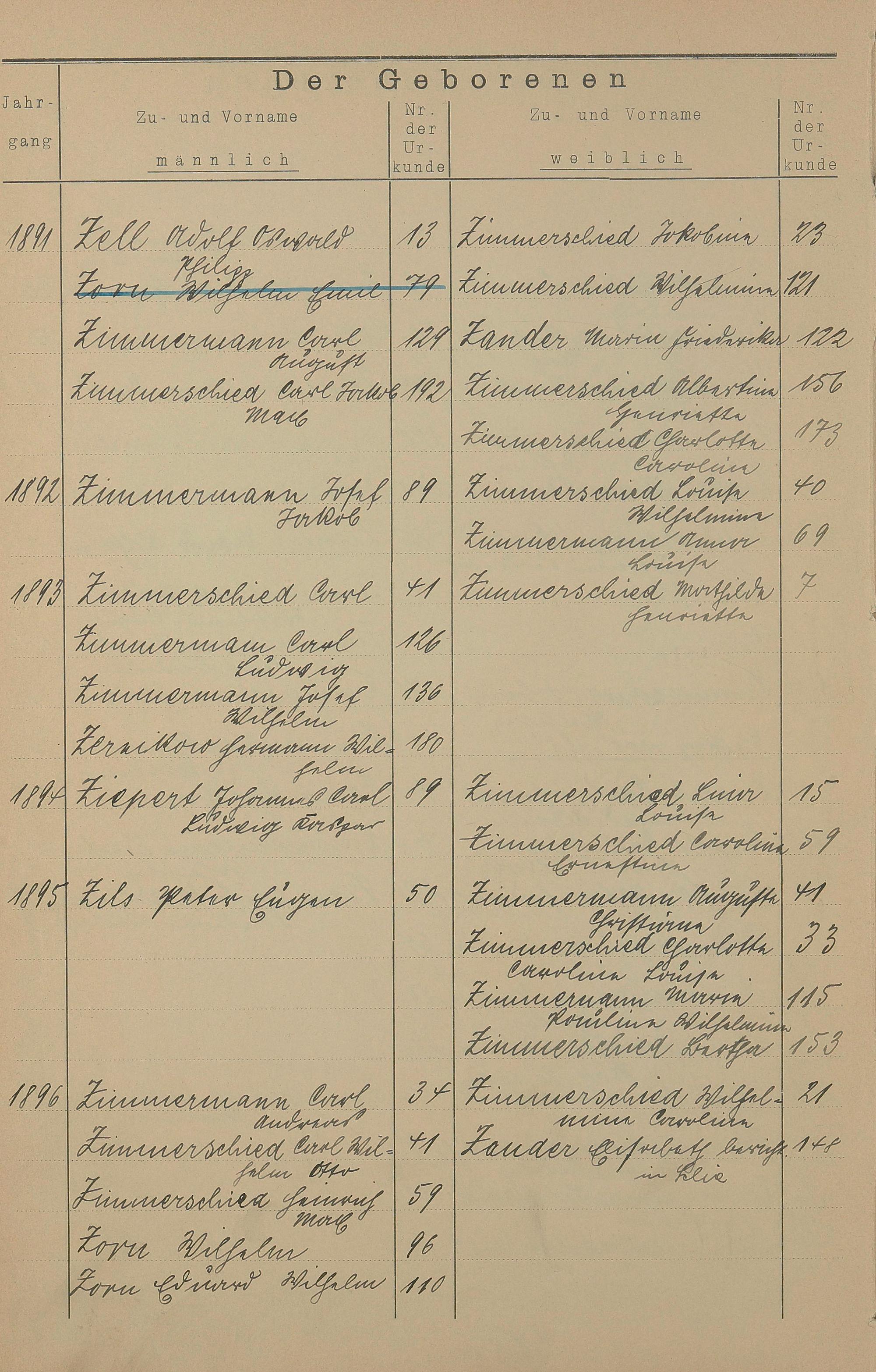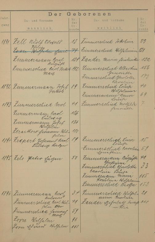 Register A - Z zum Geburtsregister 1874-1900