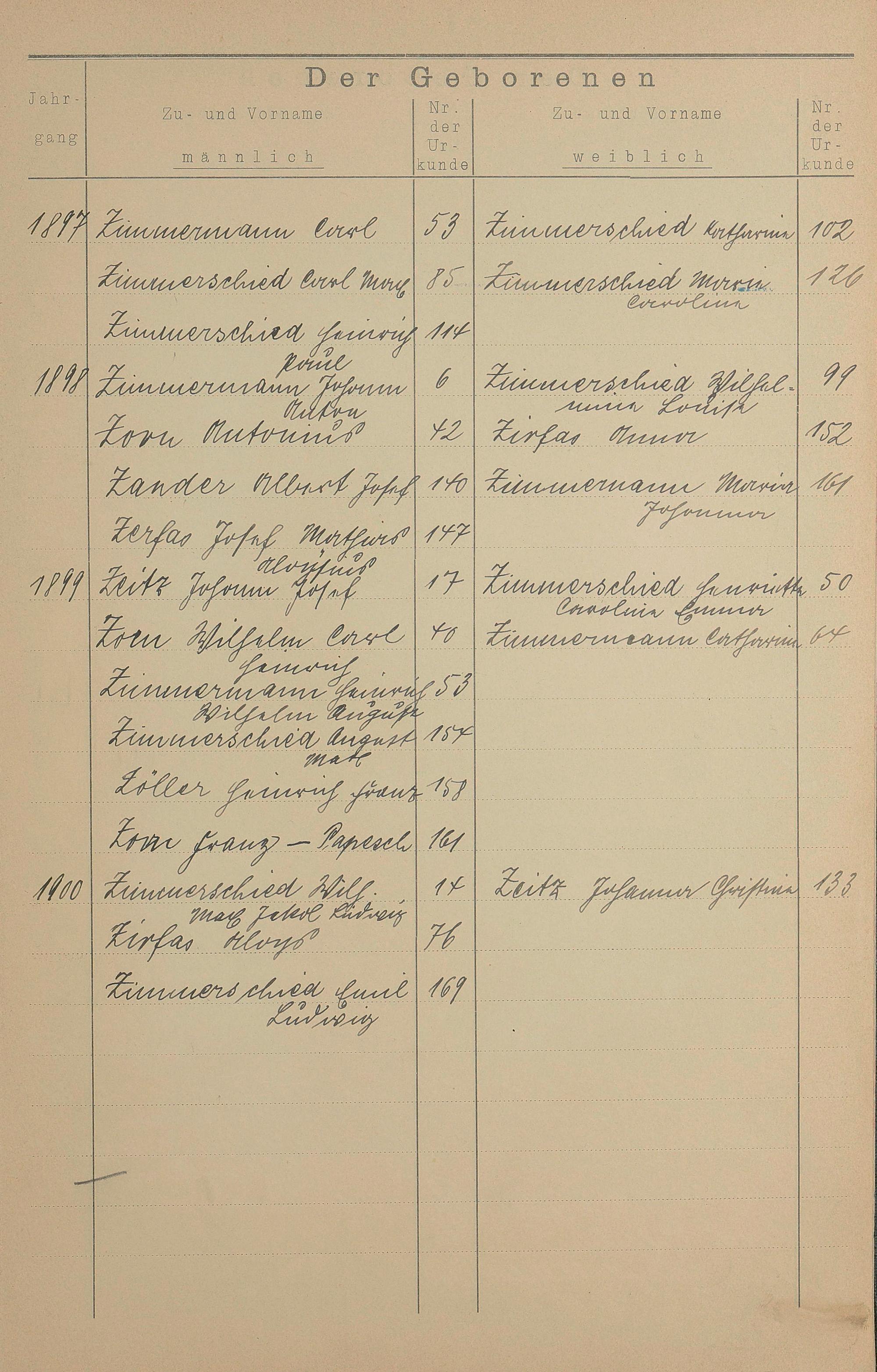 1554: Register A - Z zum Geburtsregister 1874-1900