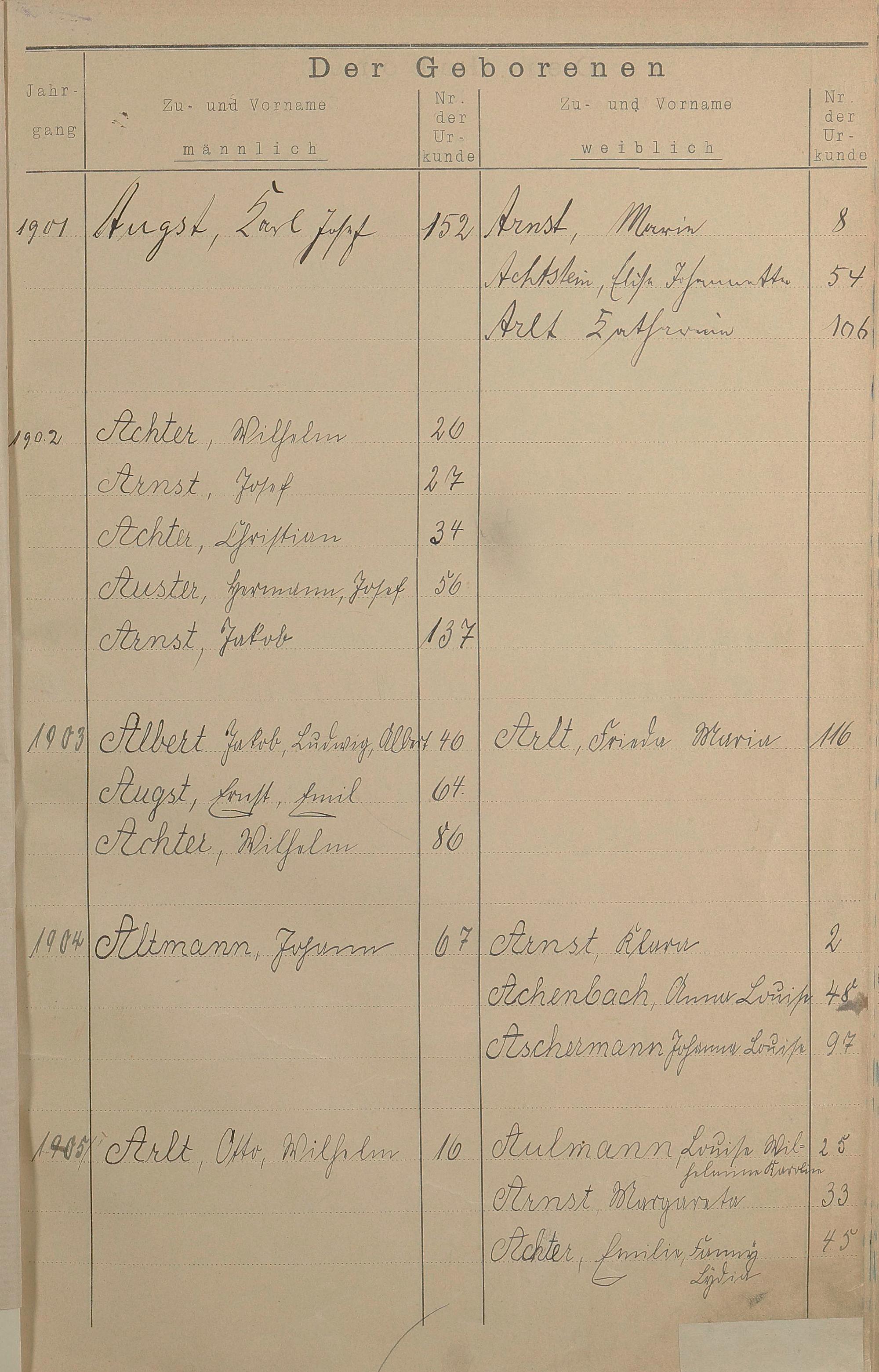 Register A - Z zum Geburtsregister 1901-1930