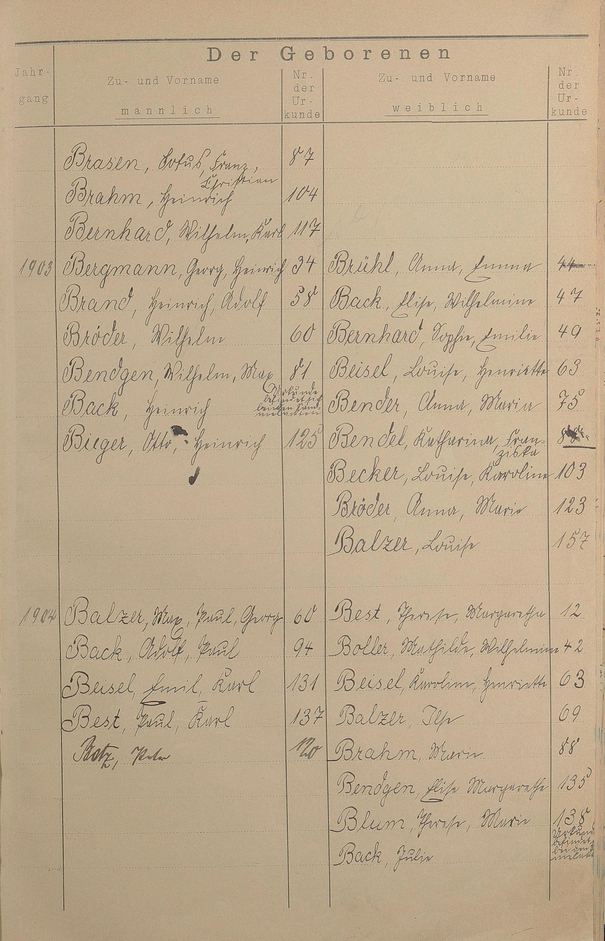 Register A - Z zum Geburtsregister 1901-1930