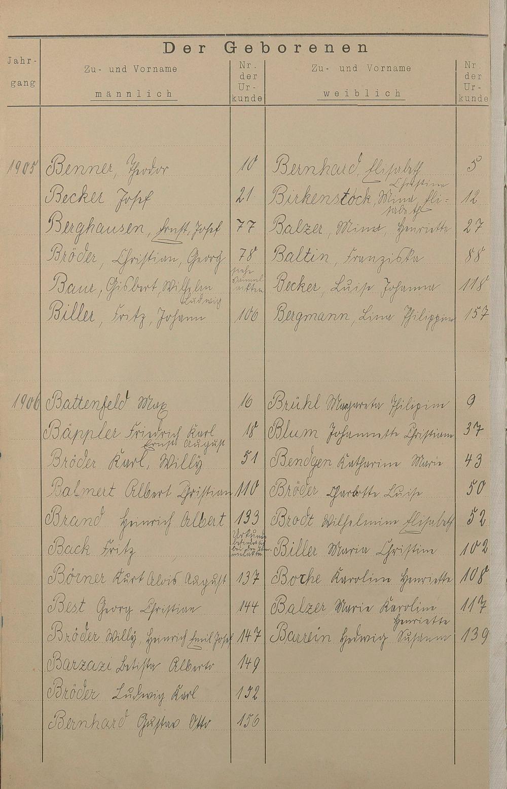 Register A - Z zum Geburtsregister 1901-1930