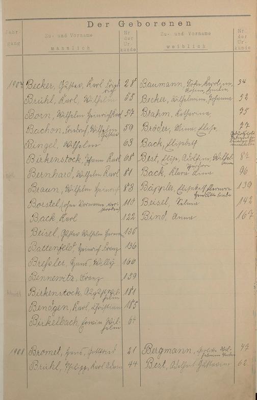 Register A - Z zum Geburtsregister 1901-1930