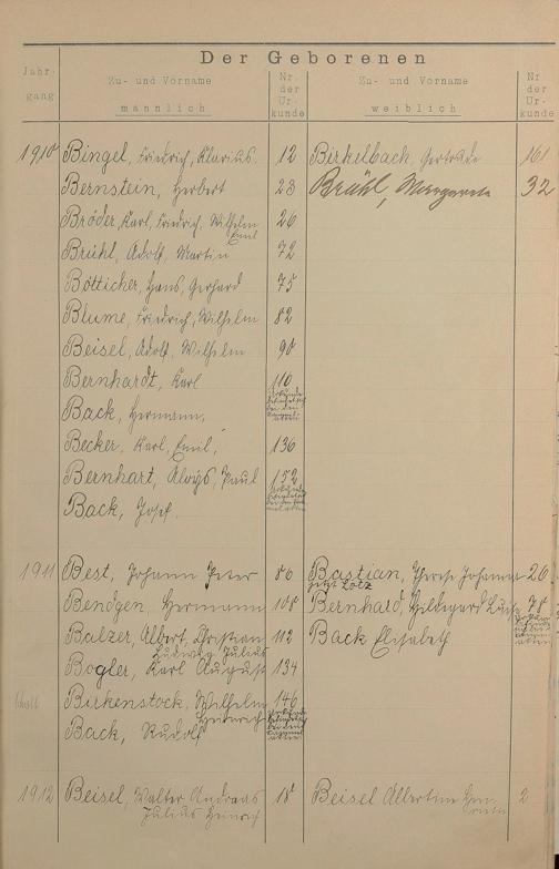Register A - Z zum Geburtsregister 1901-1930