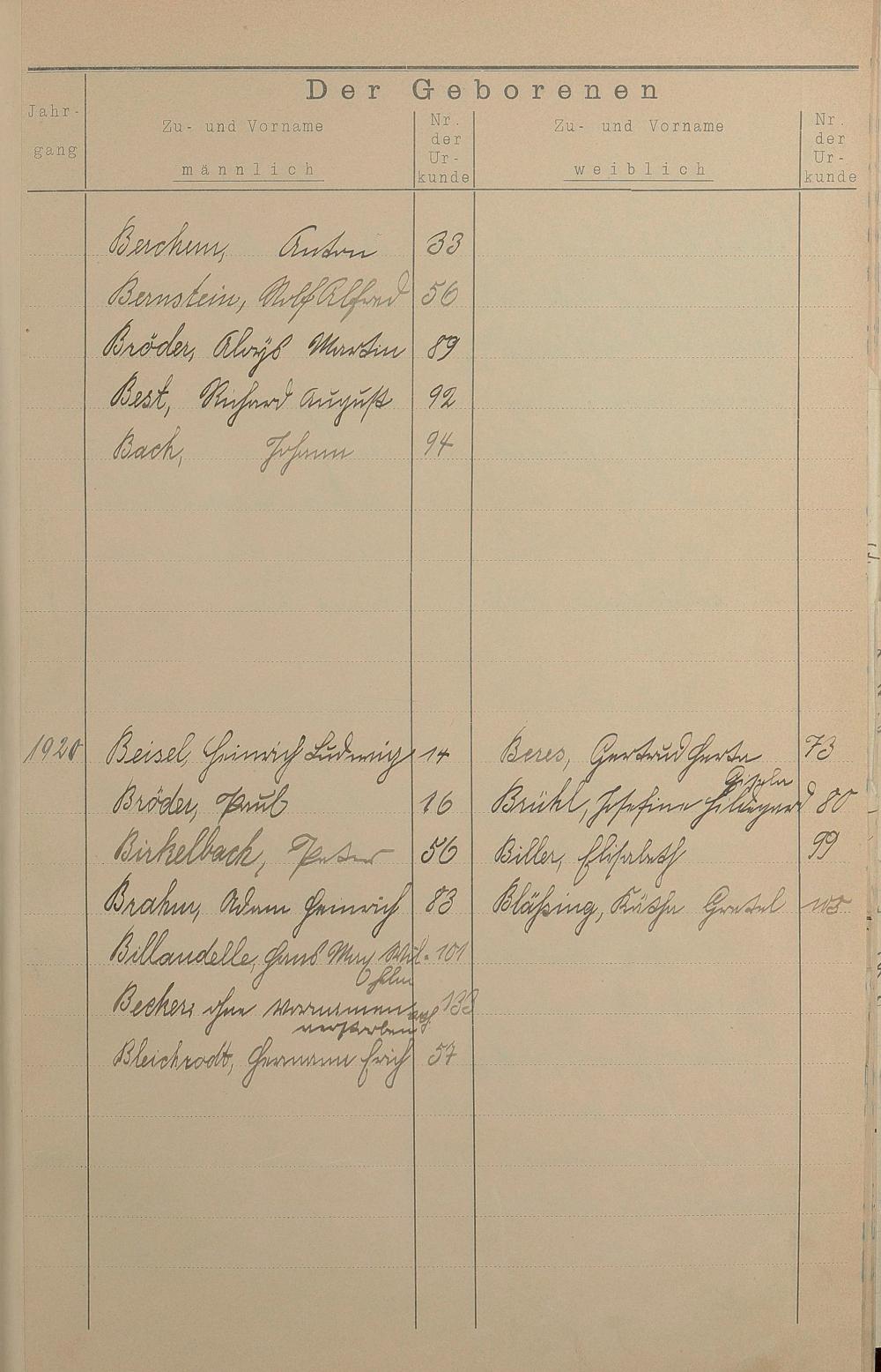 1555: Register A - Z zum Geburtsregister 1901-1930