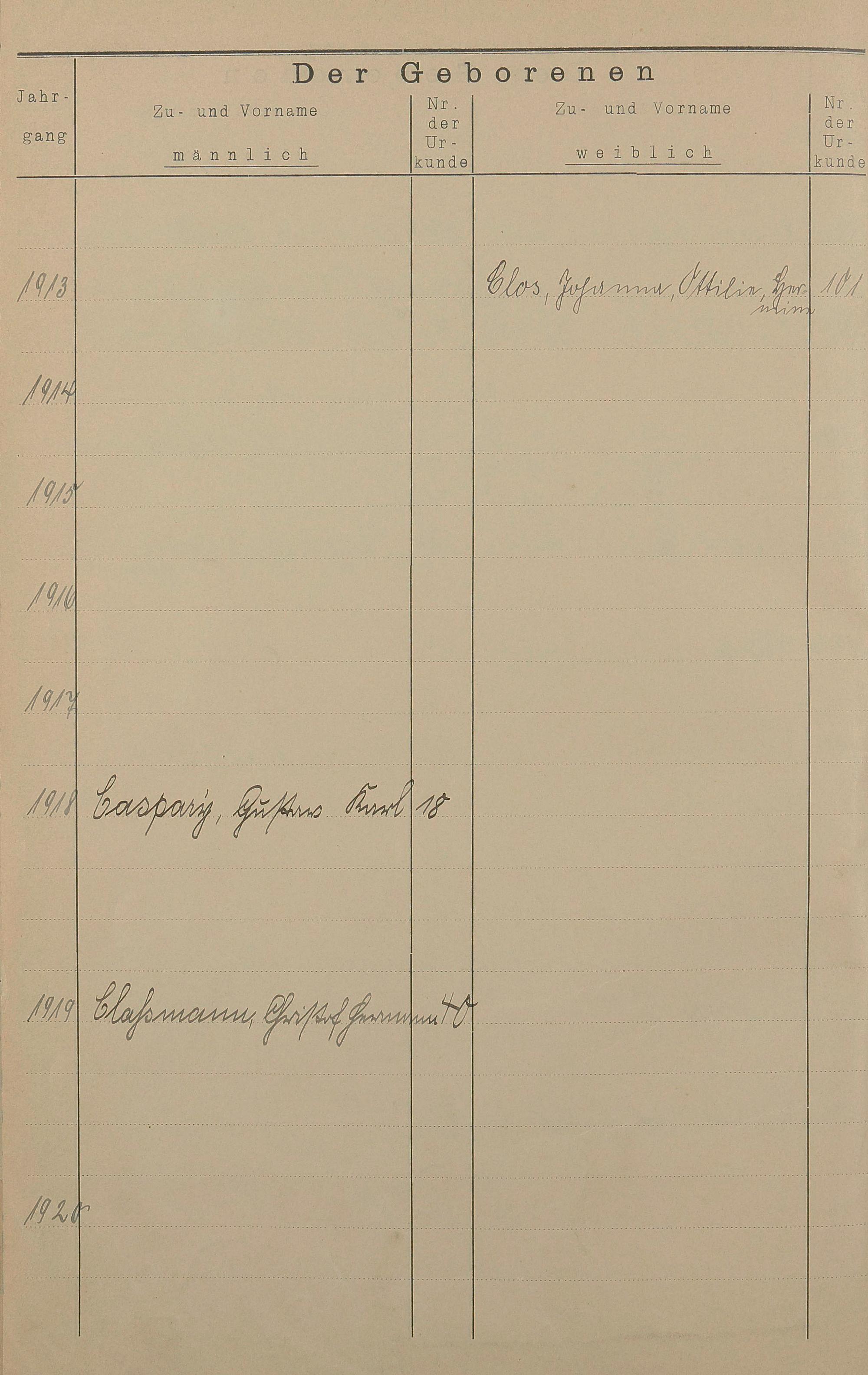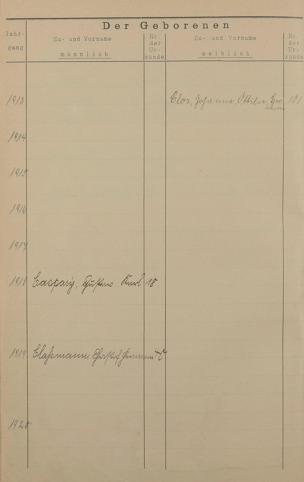 Register A - Z zum Geburtsregister 1901-1930
