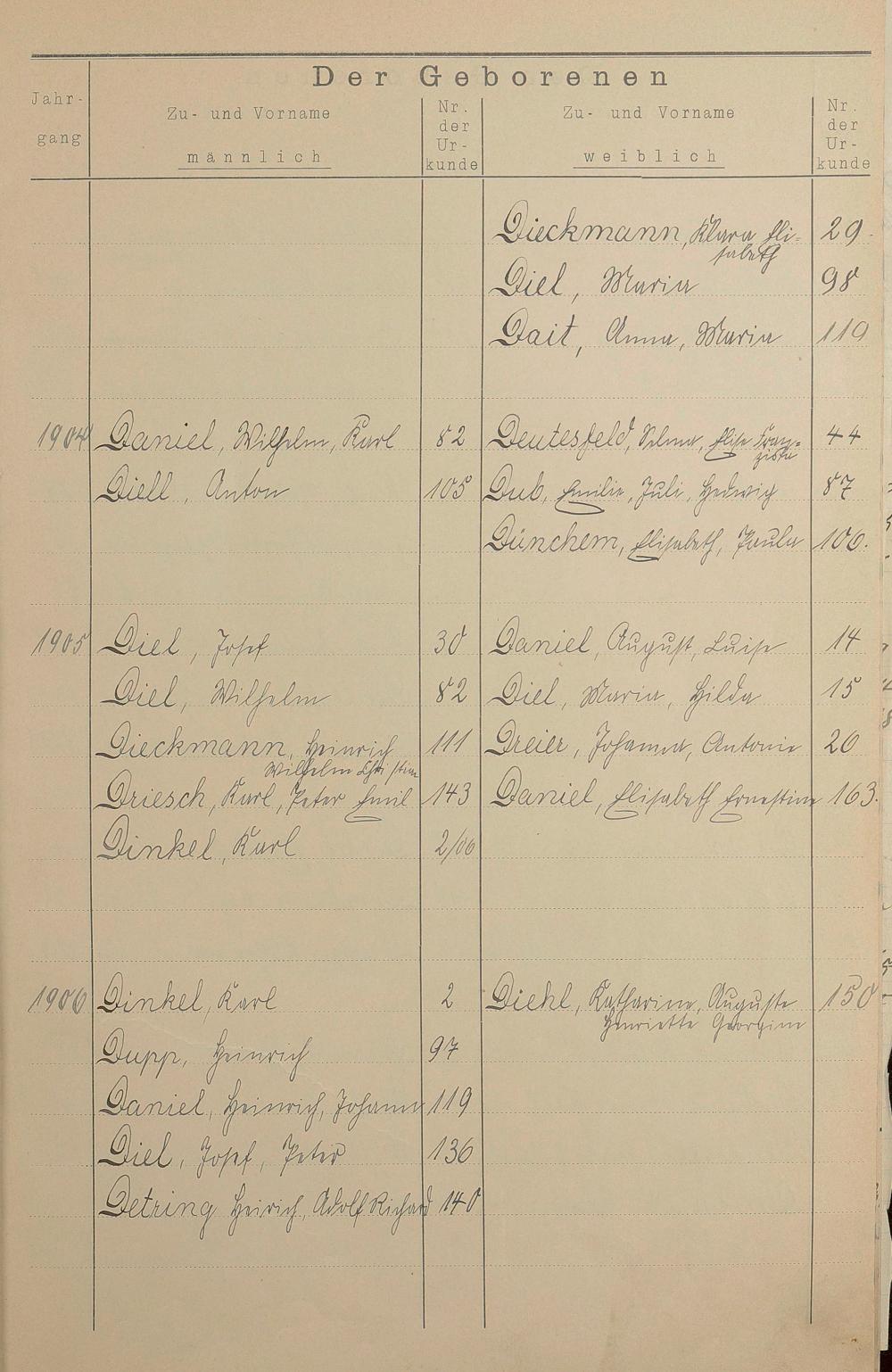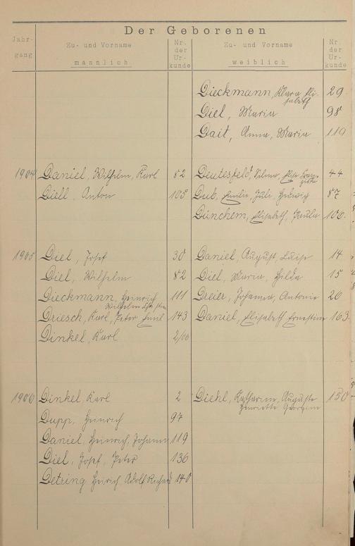 Register A - Z zum Geburtsregister 1901-1930