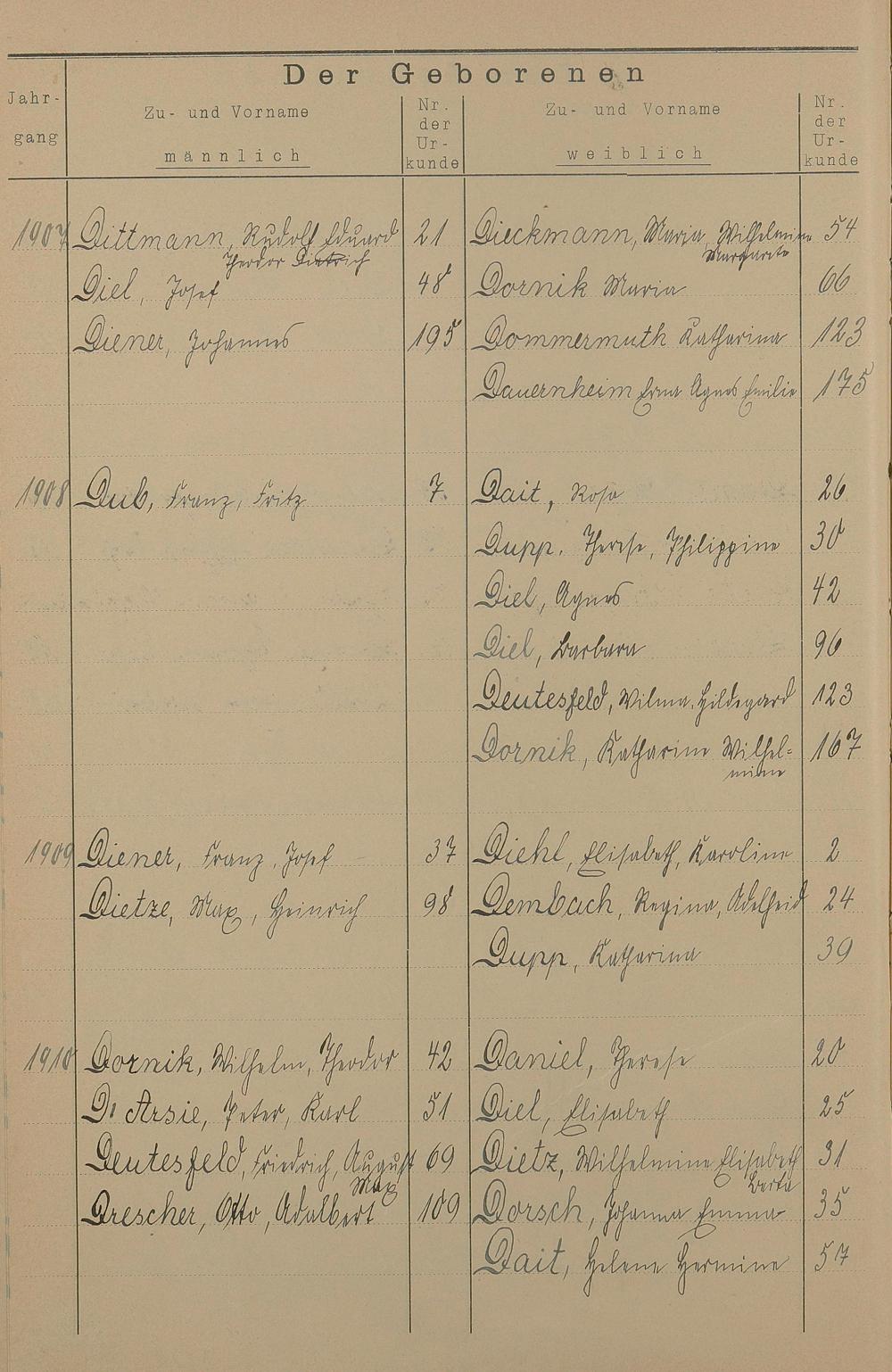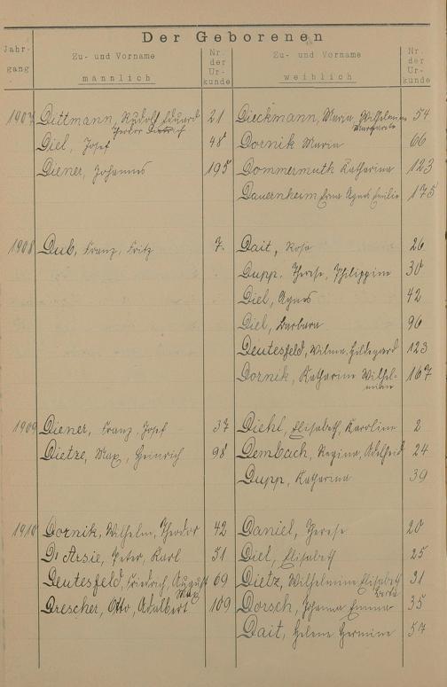 Register A - Z zum Geburtsregister 1901-1930