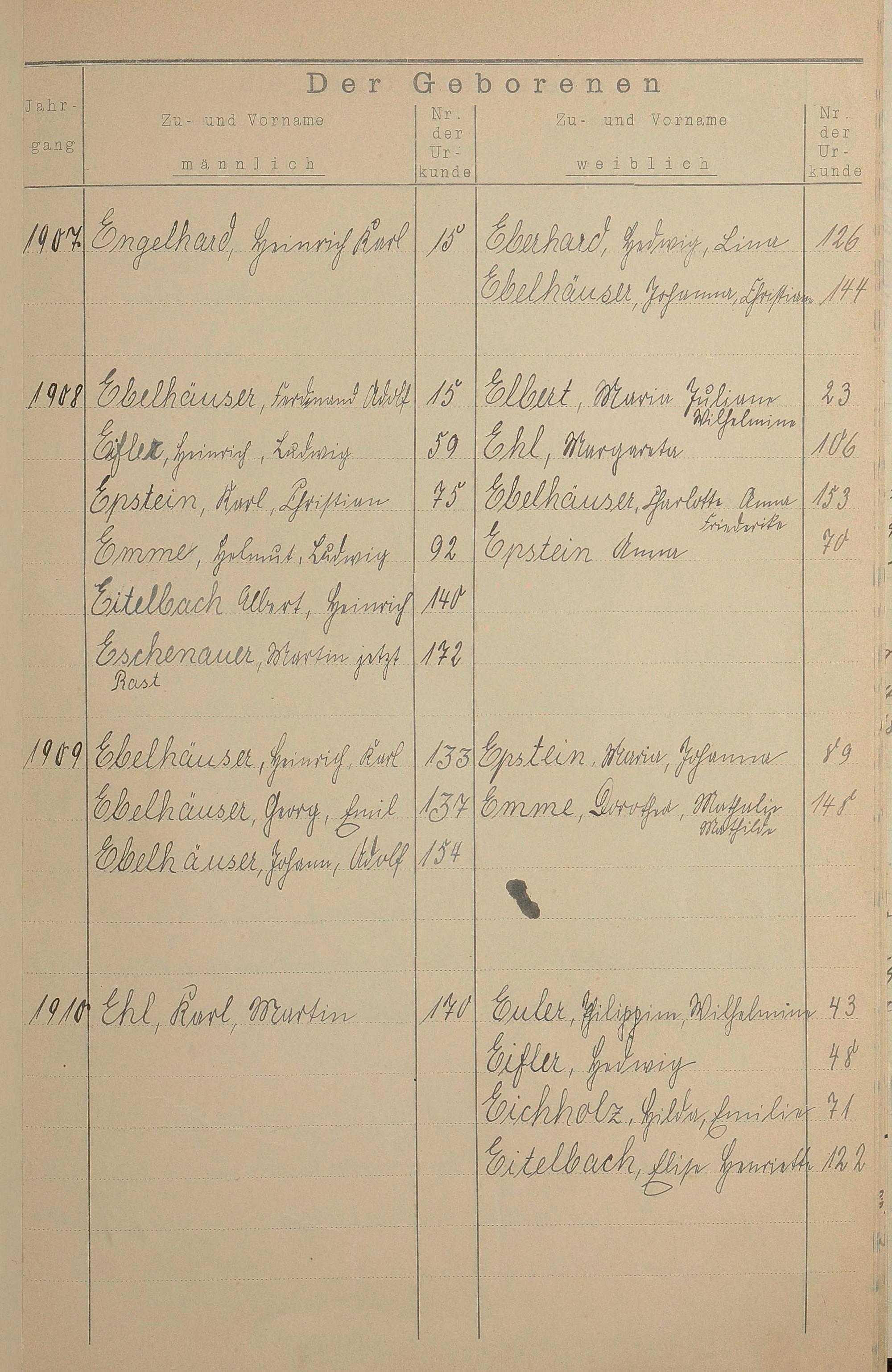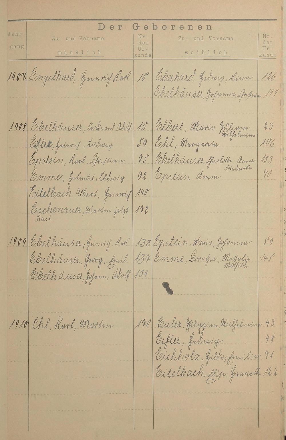 Register A - Z zum Geburtsregister 1901-1930