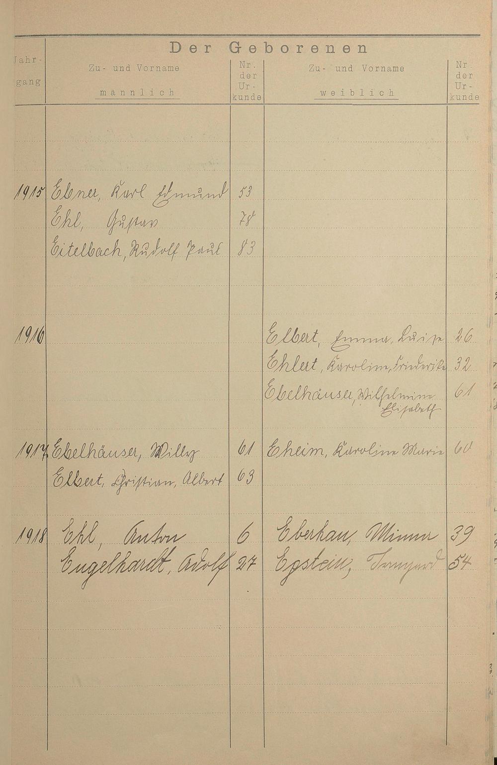 1555: Register A - Z zum Geburtsregister 1901-1930